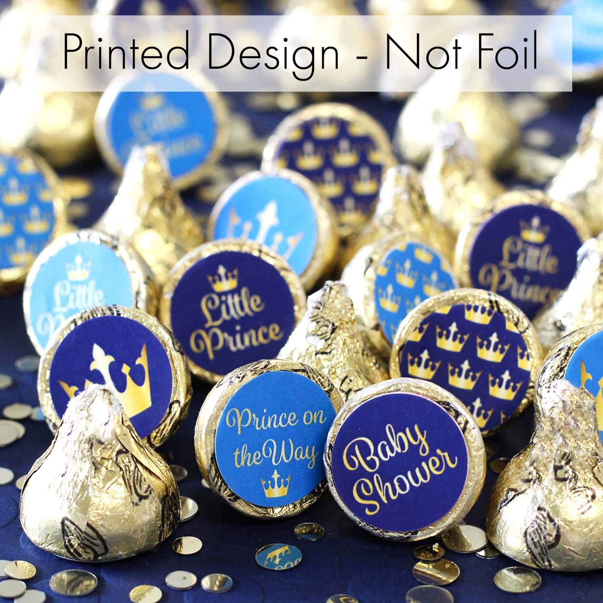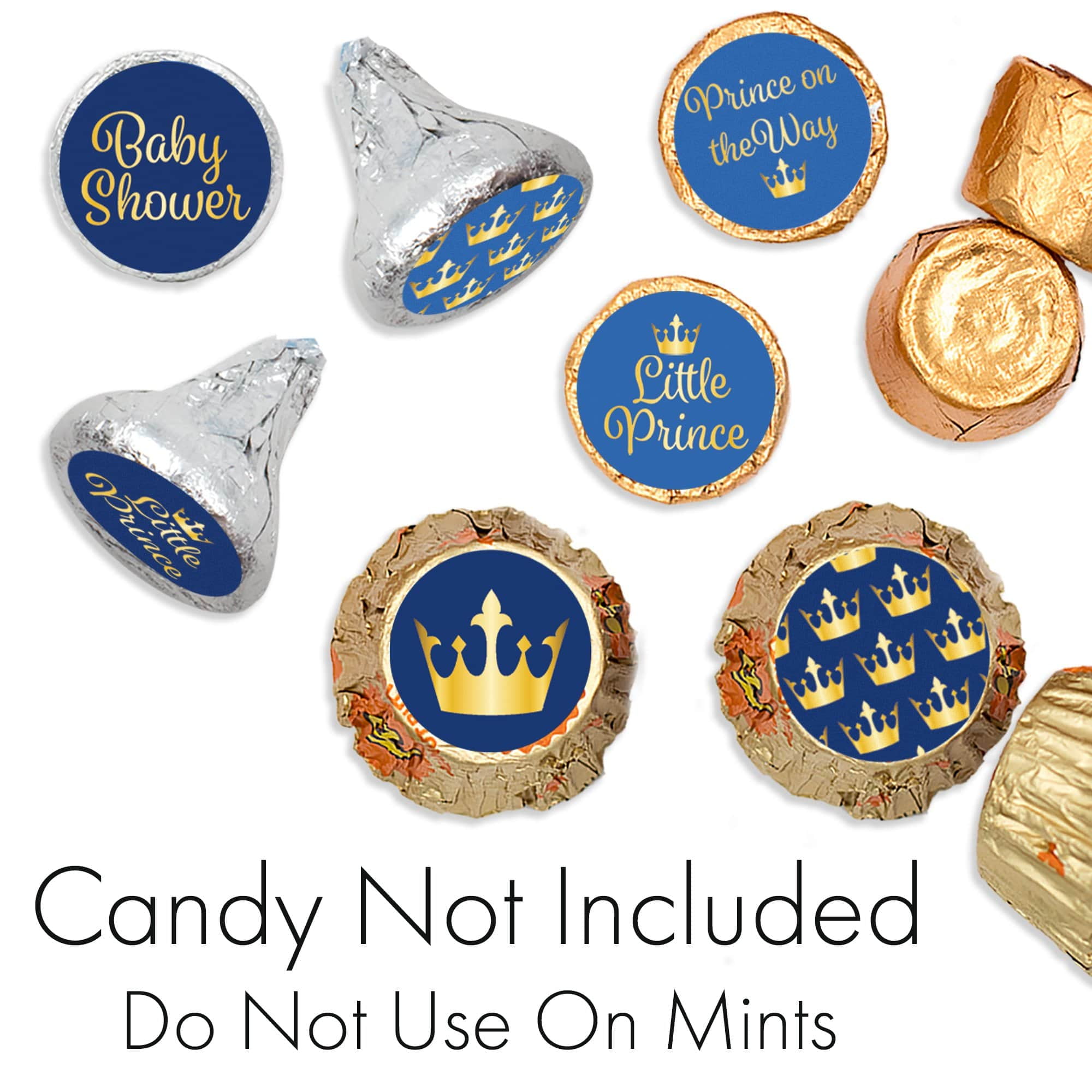 - CANDY NOT INCLUDED. 0.75" diameter each to perfectly fit bottom of Hershey’s Kisses, so you can make easy little prince baby shower favors.