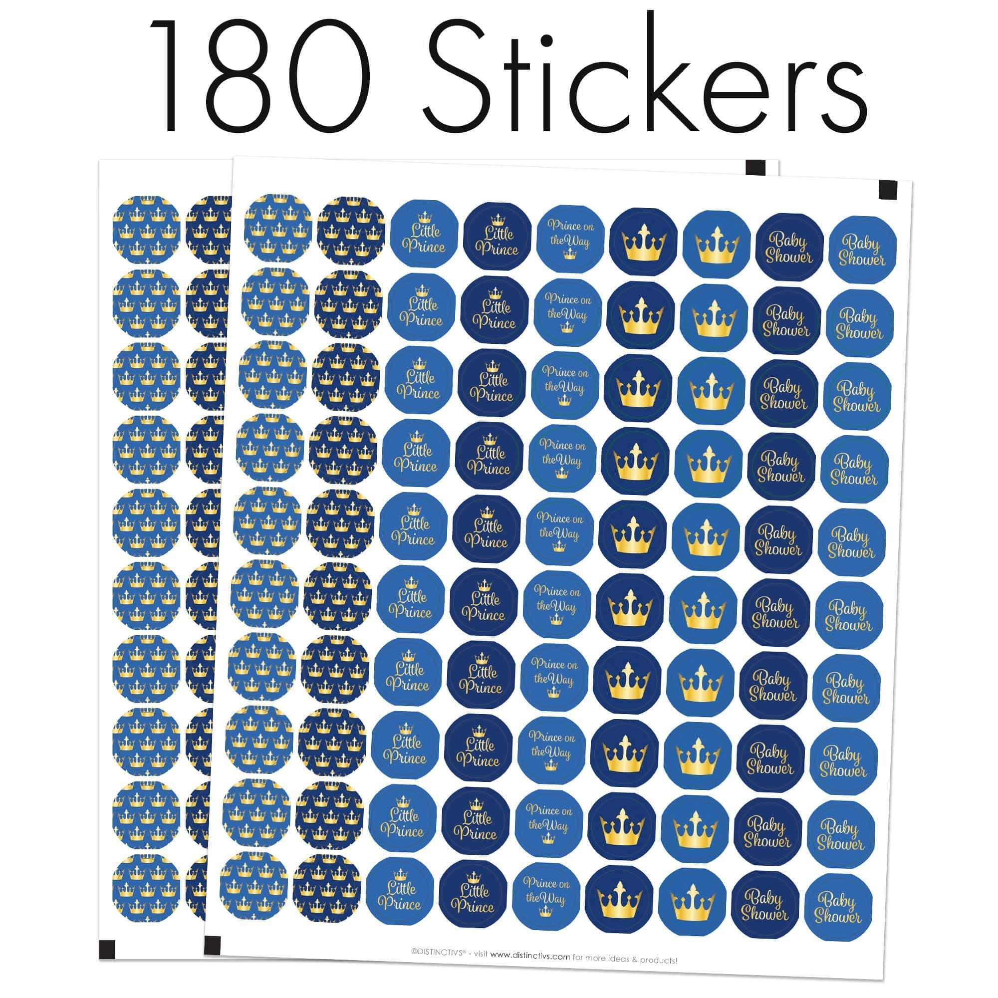 - Use the exclusively designed DISTINCTIVS Royal Party Supplies Collection stickers as part of your little prince baby shower supplies.