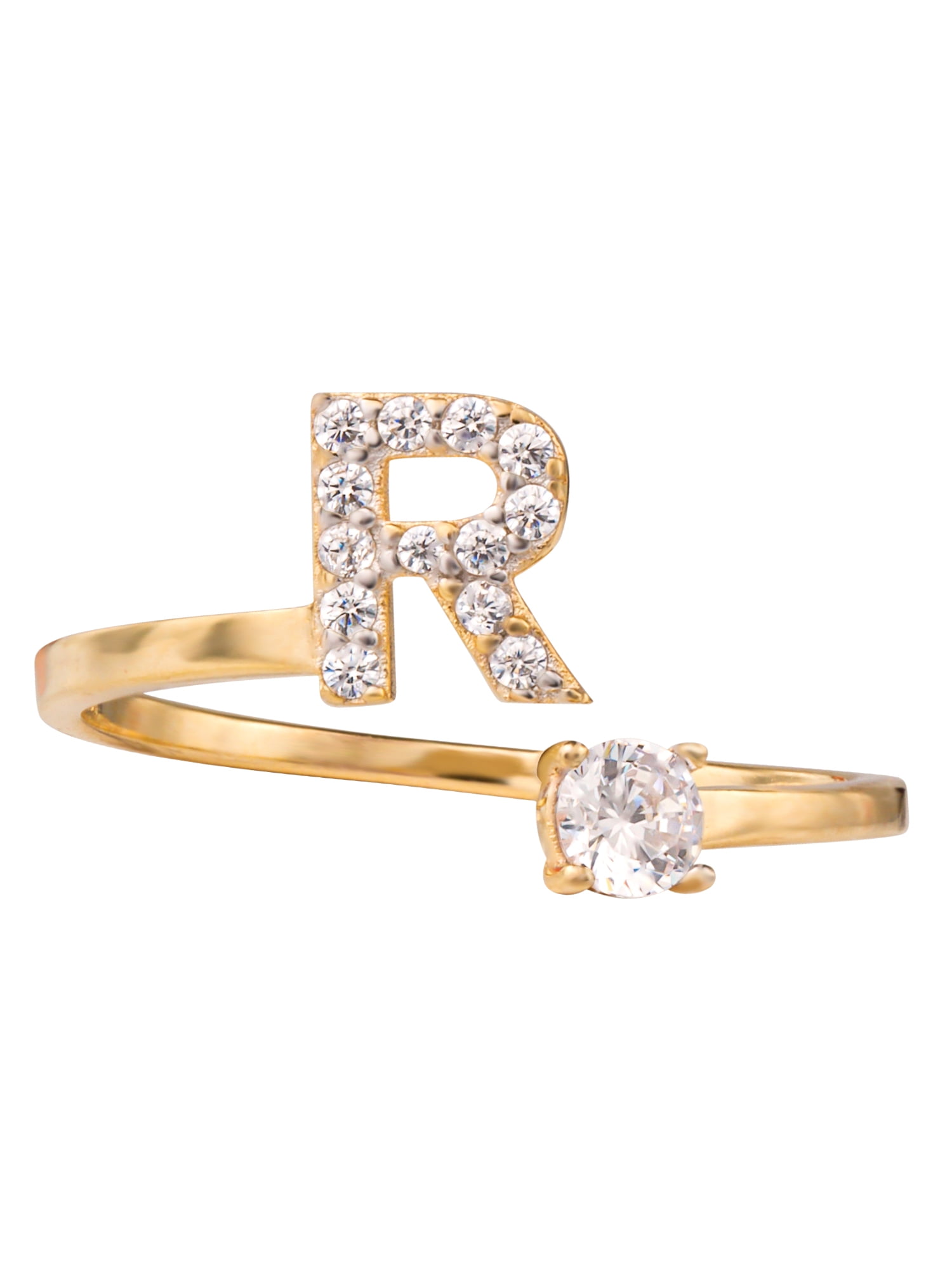 Brilliance Fine Jewelry Sterling Silver 14kt Gold Plated Cubic Zirconia Initial R Adjustable Ring