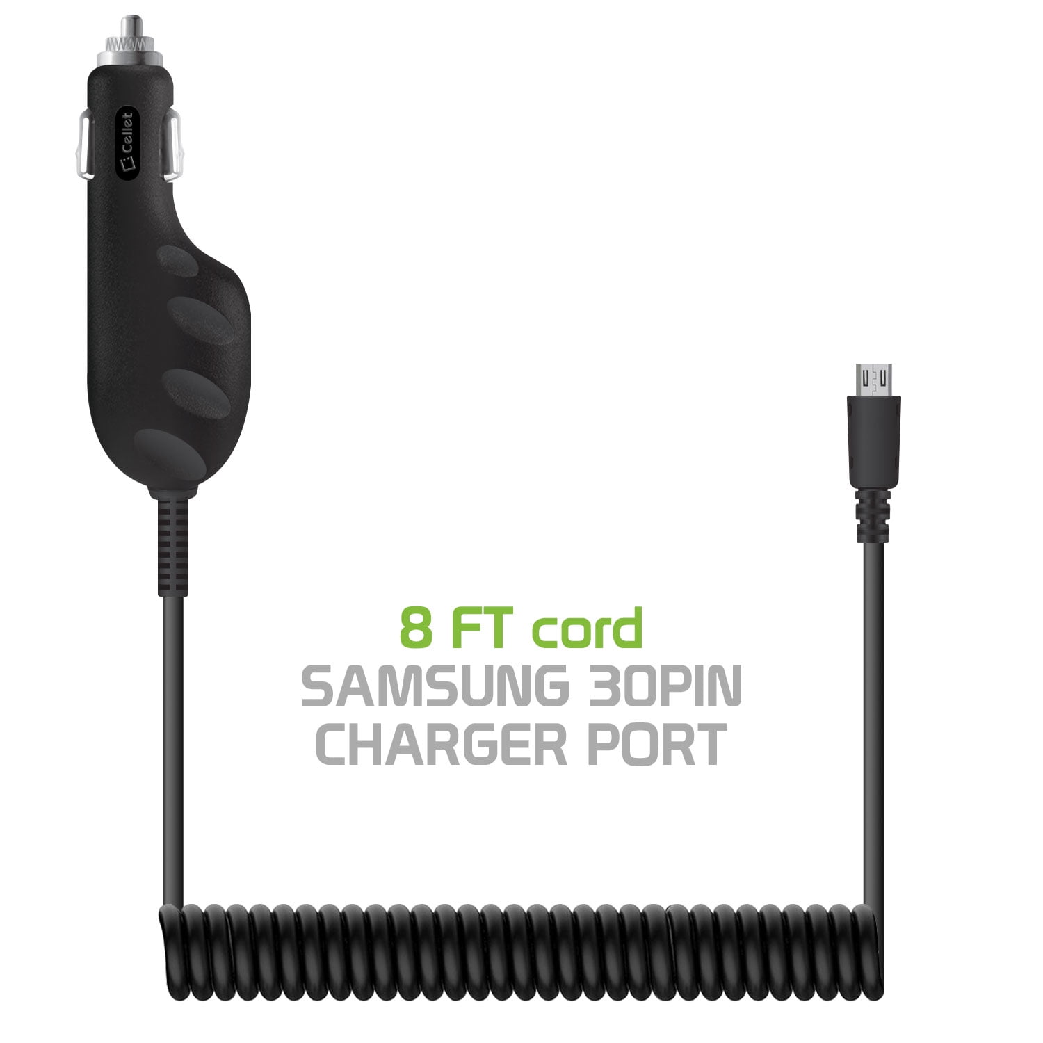 - Cellet car charger allows usage of phone while charging