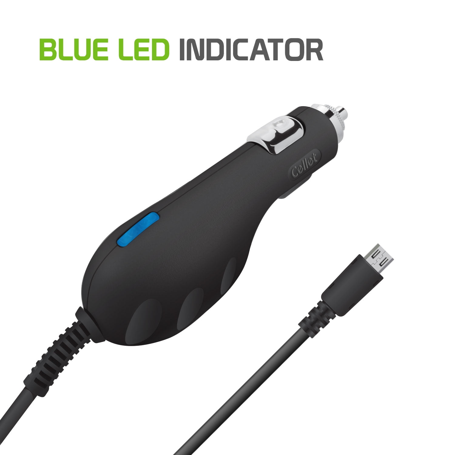The Cellet 800mA Car Super Charger is designed for the latest Android phones. It features an advanced blue LED indicator and a smart IC chip for overcharge protection. The long 6′ cord offers plenty of reaches. This micro USB car charger allows you to continue using your phone as it is being powered.