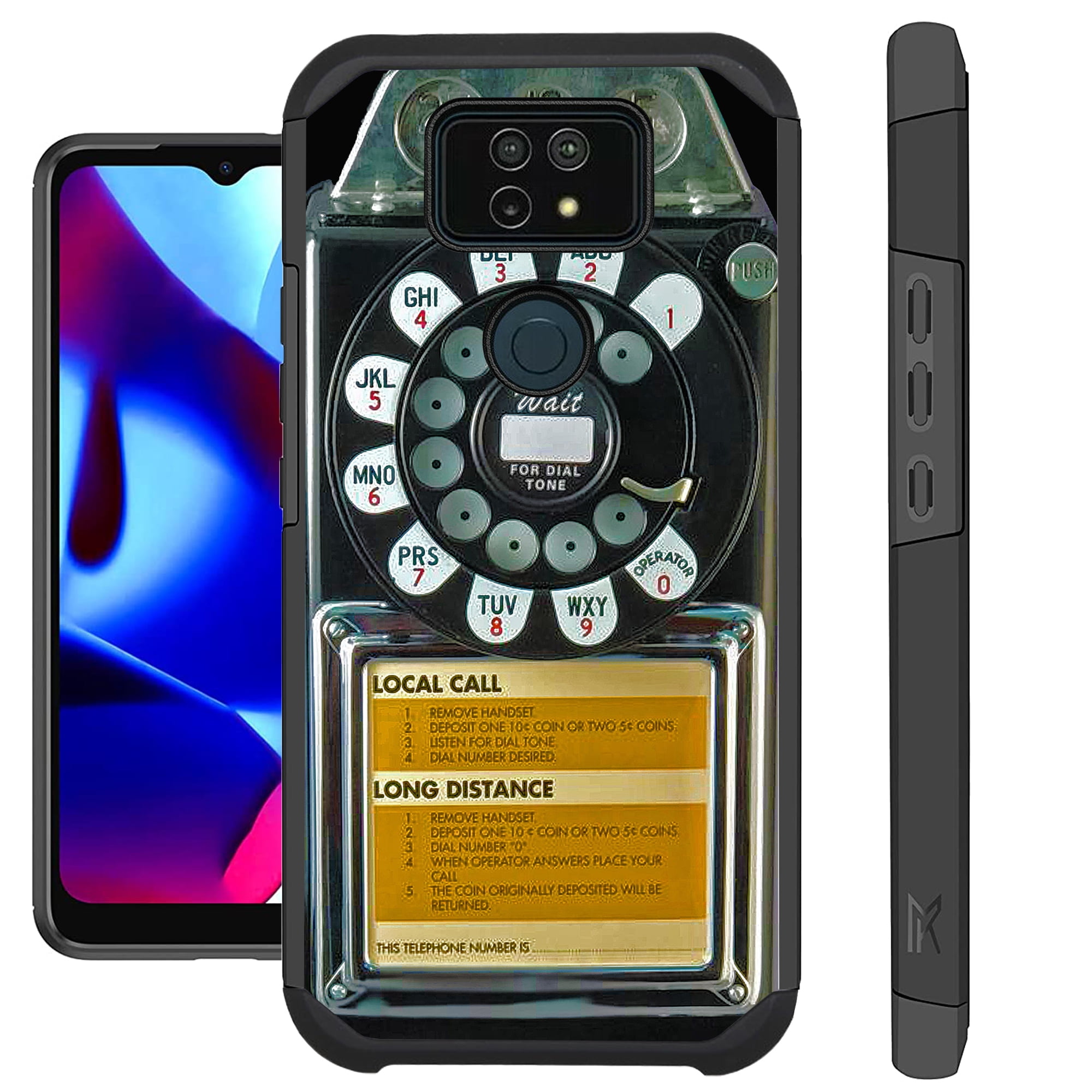 Compatible with Cricket Ovation 2 | AT&T Maestro Max (2021) Hybrid Fusion Guard Phone Case Cover (Black Payphone)