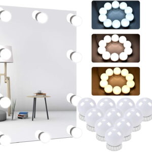 EEEkit mirror makeup light is equipped with 10 high-brightness LEDs, the light is soft and not dazzling, allowing you to complete the perfect makeup and dressing. These LED cosmetic light strip kits have 3 levels of brightness adjustable. You can select the desired brightness by pressing the "+" and "-" buttons. The dressing table lamp has 3 color temperature adjustable. Allows you to create the best look for different occasions under ideal conditions. The cute bulb measures 1.8×1.8×1.9 inches and the USB cable is 16ft long. If you find that the connecting wire of the vanity mirror light is too long, you can hide the excess wire in the lamp base by rotating the lampshade to keep the mirror neat and beautiful. Portable makeup light string uses USB low voltage power support (5V 2A), which is more secure than adapters. Plus, the dimmable bulbs stay cool, so they’re safe to touch after hours of use without the risk of burns. Hollywood-style LED bulbs are easy to install, just peel off the tape and stick it directly. LED string lights can not only be used as vanity mirror lights, but also can be used to decorate bedrooms, bathrooms, lounges, barbershops, art shows, cafes, and more. At the same time, you can also use the Hollywood vanity mirror lights as a thoughtful gift for your girlfriend, mother, and daughter. True beauty will last a lifetime, and so will your LED vanity mirror light!