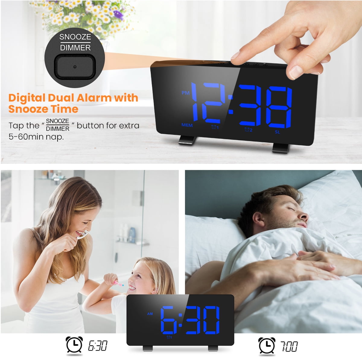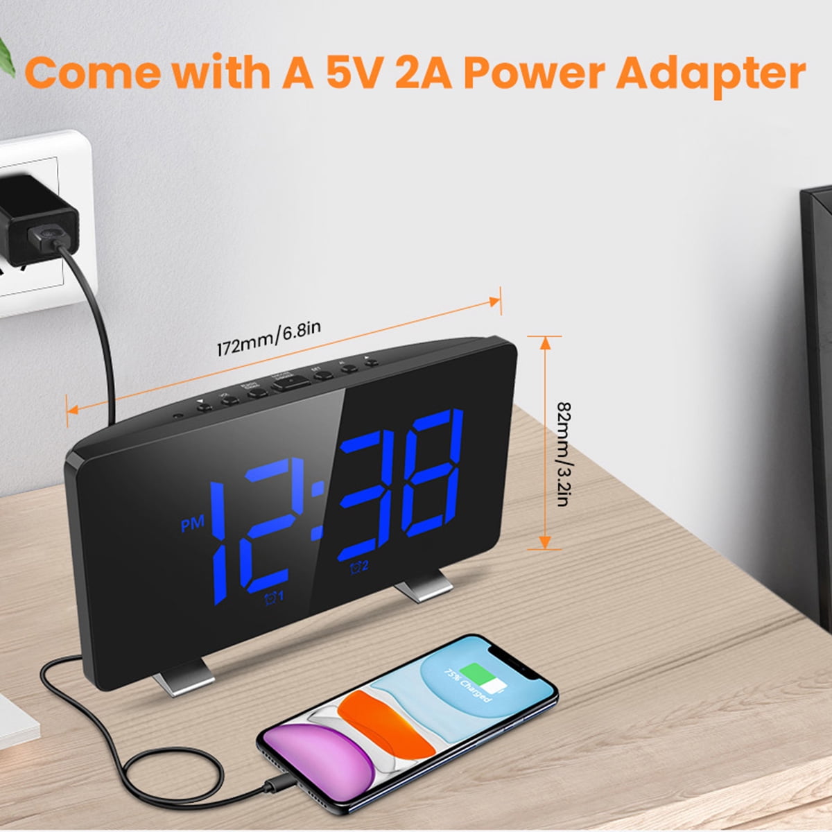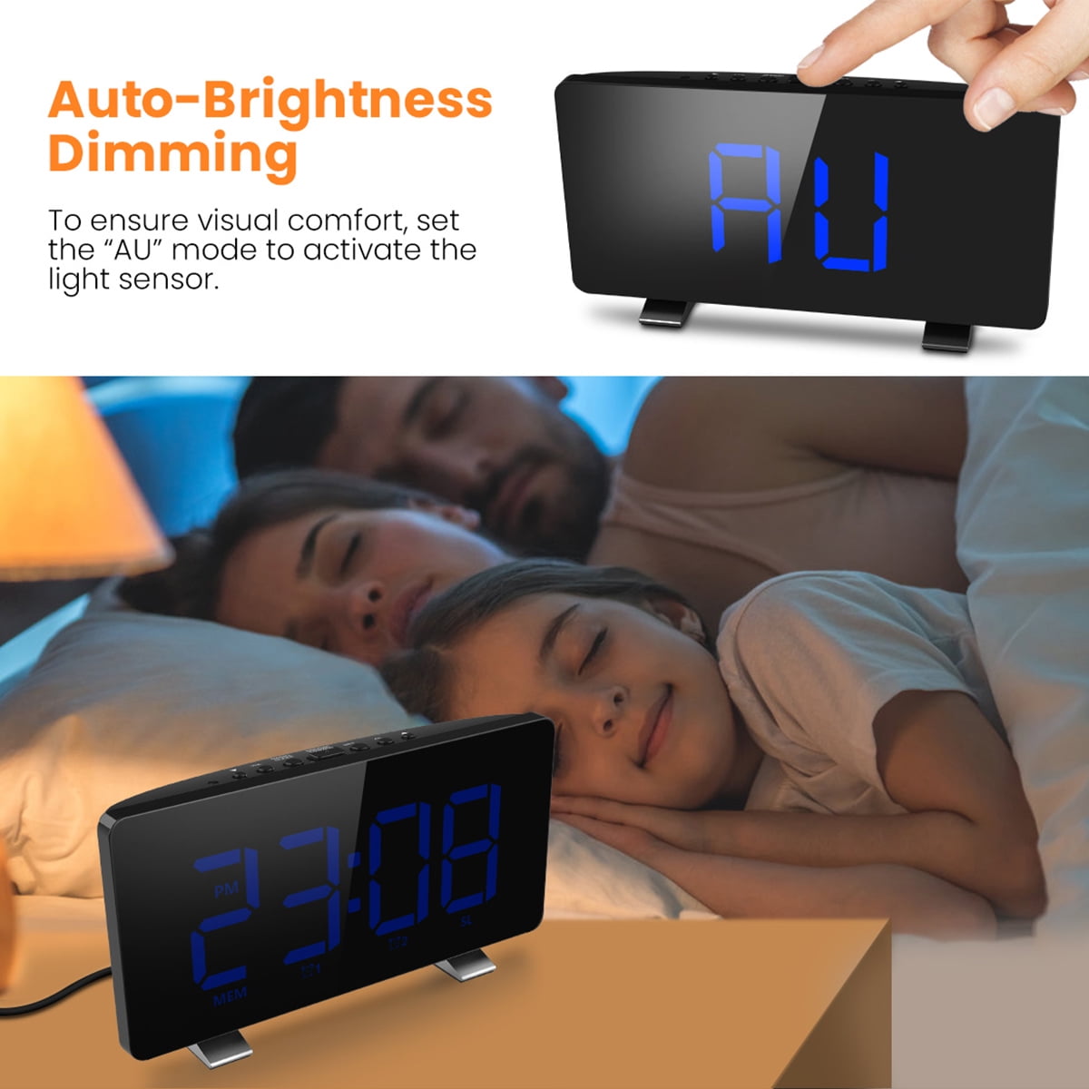 ELEGIANT 4-in-1 Digital Alarm Clock with Radio for Bedside or Kitchen, Charging Port, 4 Levels Brightness Adjustable, Snooze Time, Big Display Auto Light Sensor, Bedside Alarm Clock for Bedrooms