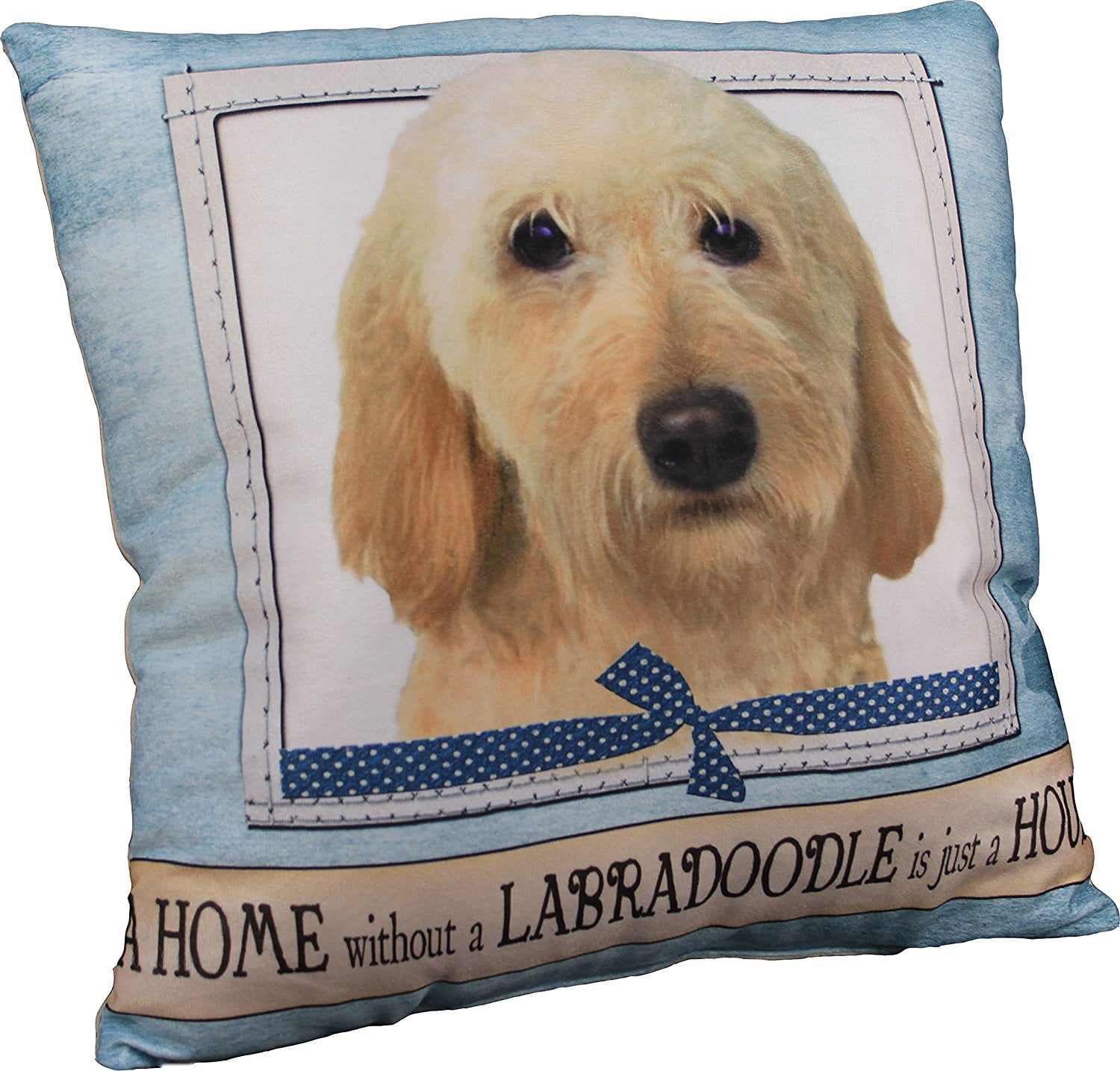 E&S Pets Large Dog Design Throw Pillow 16 x 16 inches – Yellow Labradoodle16" x 16"Screen printed with your favorite breedExtremely soft coveringGreat giftAges 3+ Surface washable 16" x 16" May arrive flat as some are vacuum packed
