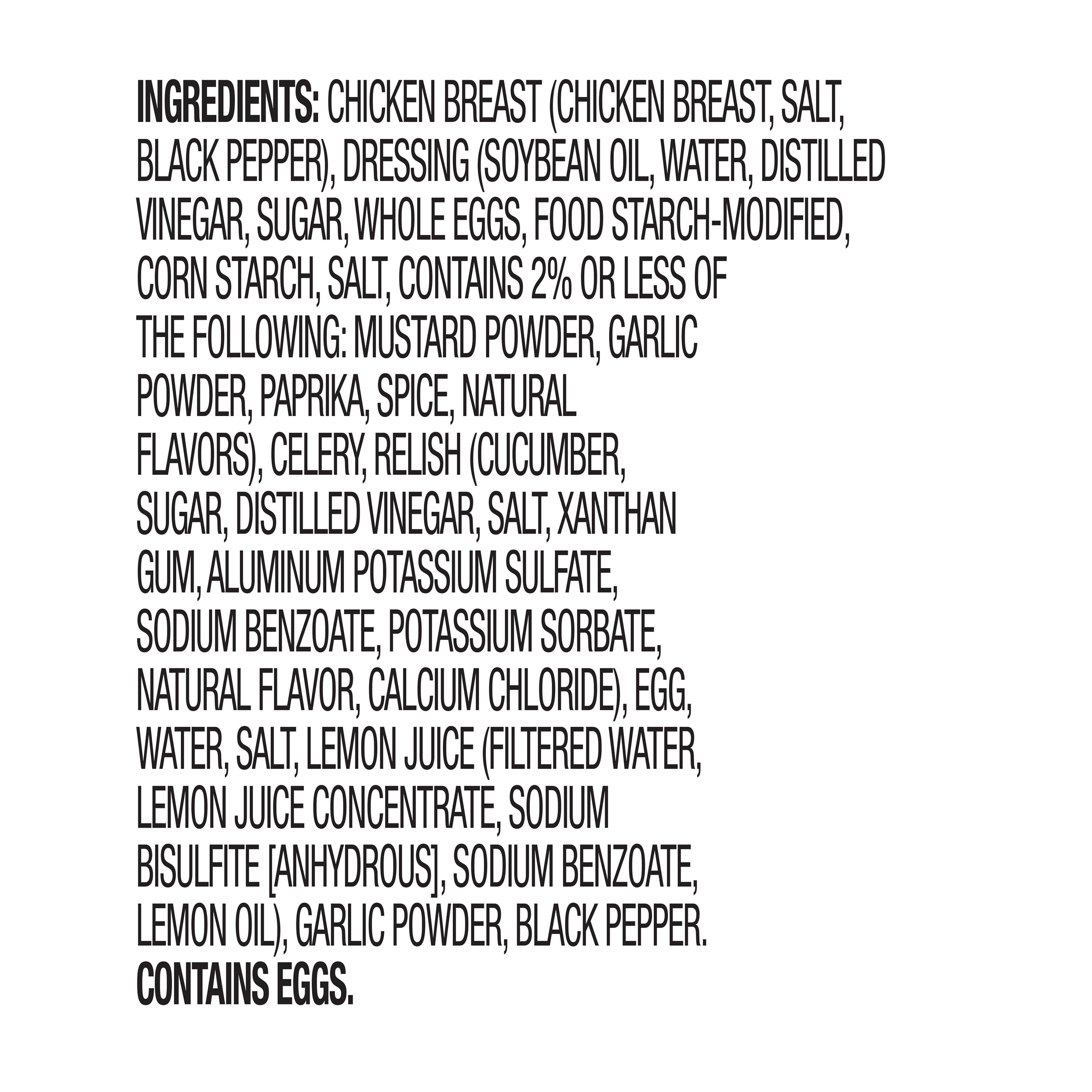 - Made with tender white meat chicken, savory dressing, and whole eggs with relish, mustard, and garlic