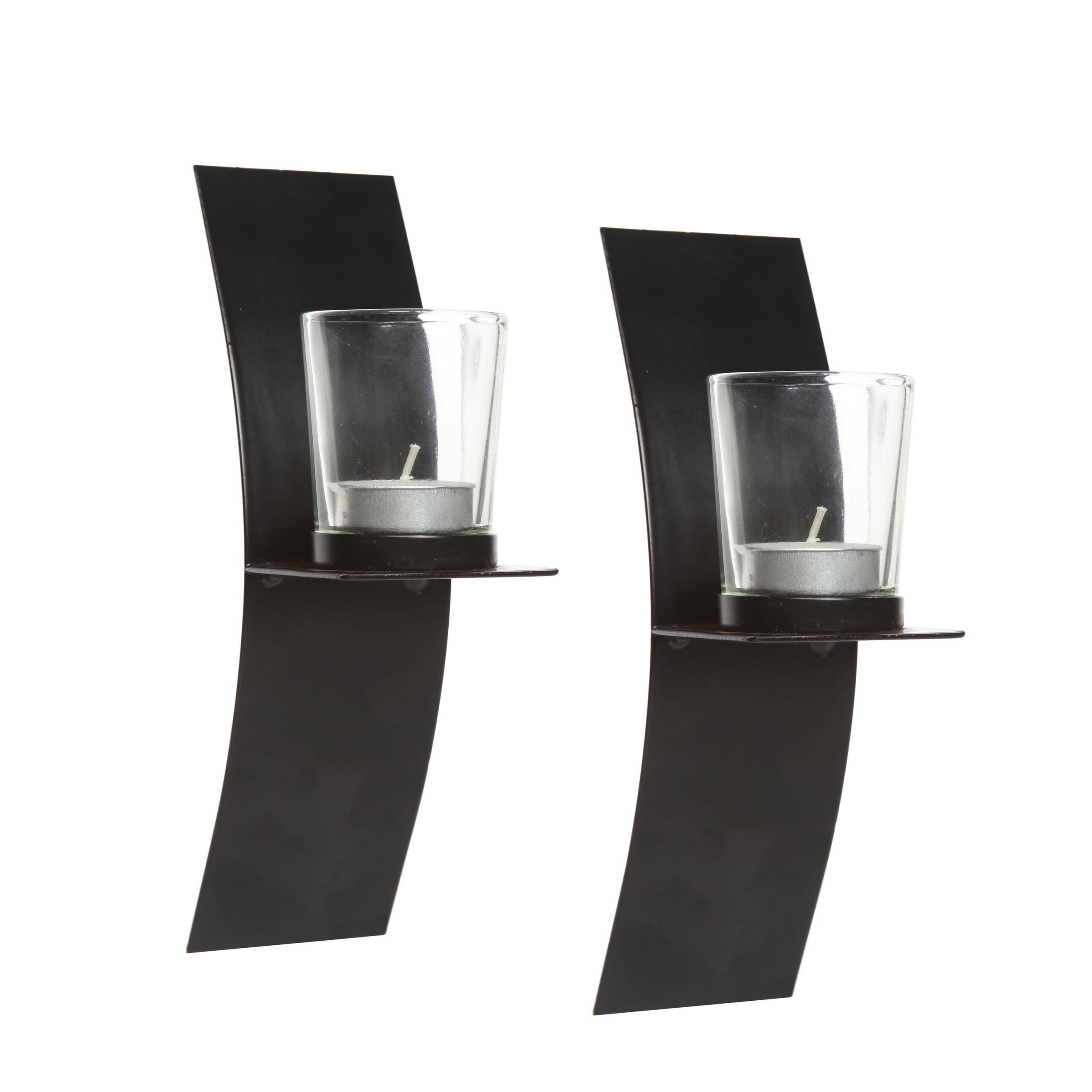 Hosley Set of 2 Modern Art Large Brown Wall Sconces with Clear Glass Tea Light Candle Holders
