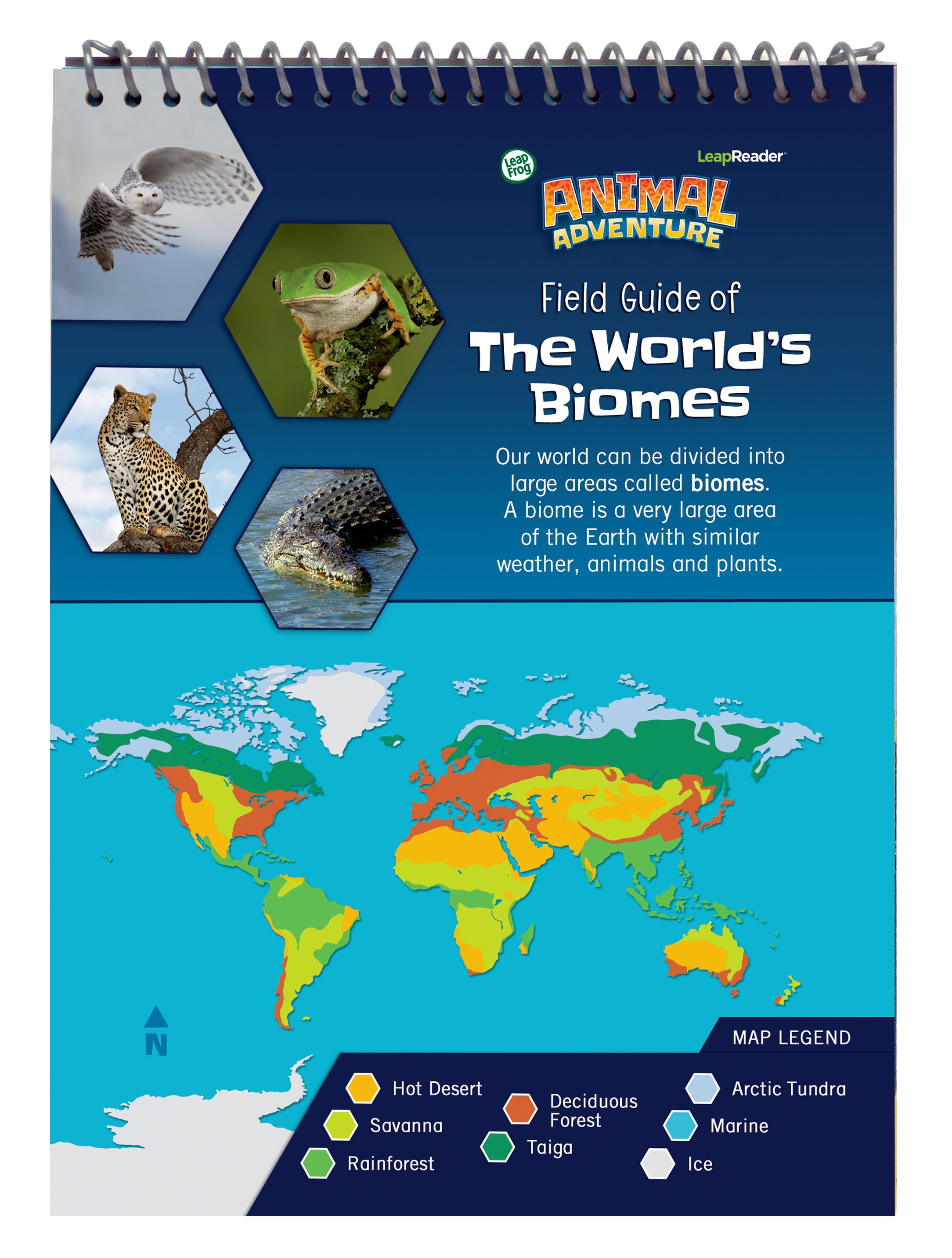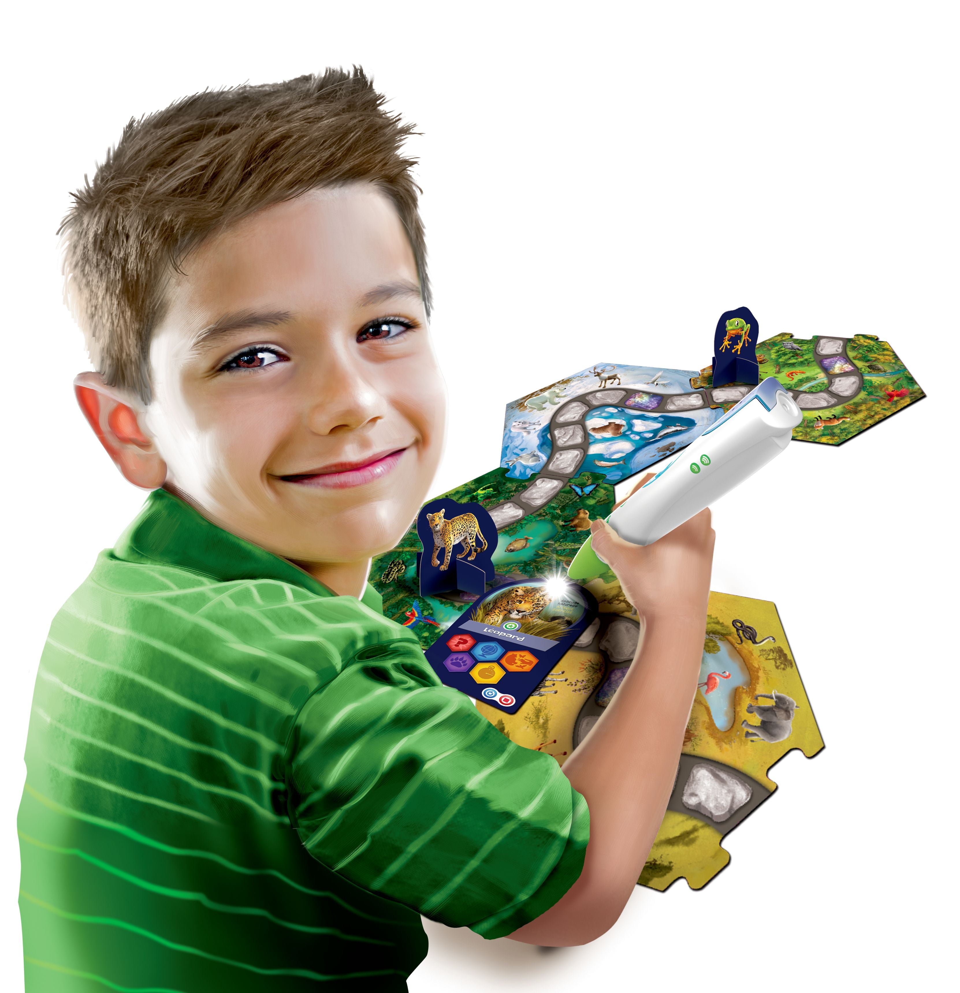Bring the animal world to life with interactive gameplay! Build a different board every time with 7 habitats, become an animal expert and explore 100+ animal facts. Designed for children ages 4-8 years old, this LeapReader Learn through Reading Interactive Reading Game builds scientific thinking skills and fosters a love of reading through an interactive game board and animal facts developed by LeapFrog learning experts. Excite their curiosity and boost understanding of the natural world with a fast-paced board game. Build your adventure path, tap an Action Card and go! Whether children challenge themselves or play with friends and family, each move will teach new science vocabulary and facts that can be used in the game and beyond. With countless game board options, 5 engaging mini-games, 4 action cards and 100s of animal facts, children will have fun practicing reading skills and scientific thinking skills over and over again. The included Field Guide has three bonus games that provide young learners with even more information about how animals are suited to their biomes and the human impact on our world. Providing children with opportunities to build knowledge in an area of personal interest can support reading comprehension and vocabulary development. With the Learn through Reading series, children apply their reading skills to explore maps, charts, tables and other types of informational texts. LeapReader Interactive Reading Game: Animal Adventure works with LeapReader and Tag. Sold separately.Providing children with opportunities to build knowledge in an area of personal interest can support reading comprehension and vocabulary development. With the Learn through Reading series, children apply their reading skills to explore maps, charts, tables and other types of informational texts. LeapReader Interactive Reading Game: Animal Adventure works with LeapReader. Sold separately.