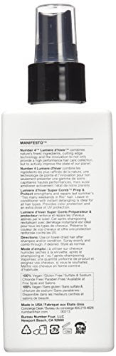 Number 4 Lumiere d’hiver Super Comb Prep & ProtectWhat it is: This leave-in conditioning treatment strengthens and repairs while detangling and nourishing your hair. What it does: No. 4 Lumiere d’hiver Super Comb Prep & Protect has UV/Color Polar Shield to protect hair from the suns harmful rays. What else you need to know: It also contains vegetable proteins that help to strengthen and protect the hair. Liquid Vibrance Complex (Black Currant, Soy Yogurt, Algae, Yerba Mate) Nutritive to hair and scalp, moisturizes and enhances shine. Contains a blend of vitamins and minerals to restore natural vibrancy. Color protecting, 100% Vegan, Gluten Free, Sulfate Free, Paraben FreeUse on towel-dried hair after shampoo and/or condition. Spray evenly and comb through, if desired. Style as normal