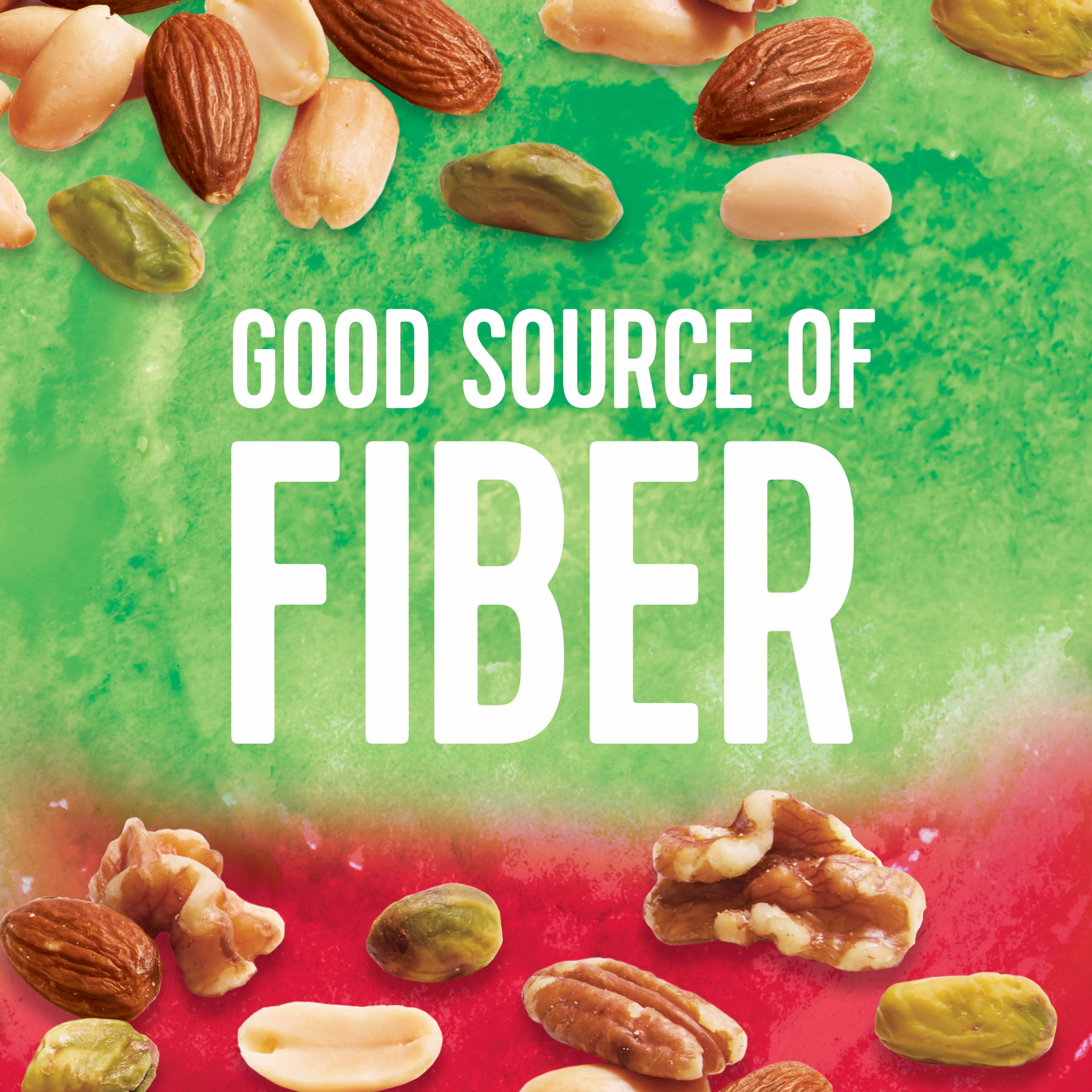 Planters NUT-rition Heart Healthy Nut Mix offers a delicious mix of peanuts, almonds, pistachios, pecans and walnuts to deliver that crunch you crave. A dash of sea salt enhances the flavor. Providing you six essential nutrients, these roasted mixed nuts offer 6 grams of protein per serving to help provide that energy boost you need throughout the day. This gluten free snack nut mix is also low in sodium, cholesterol free, trans-fat free and a good source of fiber, helping you feel your best. Pack these roasted nuts in your lunch or gym bag for a Non-GMO snack that may help to reduce the risk of heart disease. Scientific evidence suggests but does not prove that eating 1.5 ounces per day of most nuts as part of a diet low in saturated fat and cholesterol and not resulting in increased caloric intake may reduce the risk of heart disease. The Kosher-friendly mixed nuts come in convenient on-the-go packaging. Each 7.5 ounce box contains 7 single-serve packs for quick snacking.