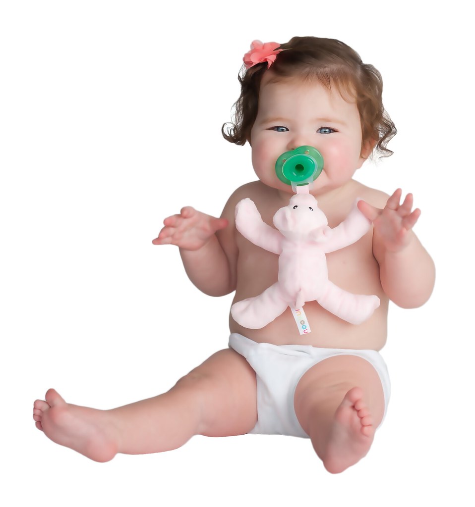 Eliminate the stress of searching for lost pacifiers with our universal pacifier holder. Paci-Plushies® Pacifier Holders keep the pacifier close to baby and make it easier for babies to grasp onto and independently maneuver the pacifier. Paci-Plushies® have a flexible Hug Ring™ that attaches to a variety of baby’s favorite pacifiers including Mam, Avent, NUK and many more.