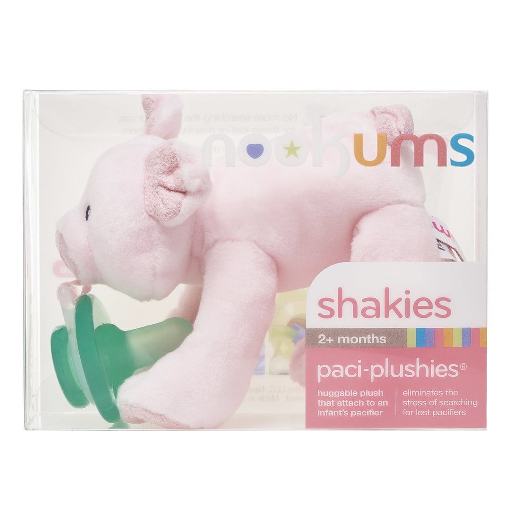 Our huggable designs are sized for little hands and textured for touch and exploration. Choose from our Shakies Collection for the added feature of a soft rattle sound that stimulates and encourages self-play. When baby outgrows the pacifier, the Paci-Plushies® animal becomes a familiar toy that helps to ease the transition.