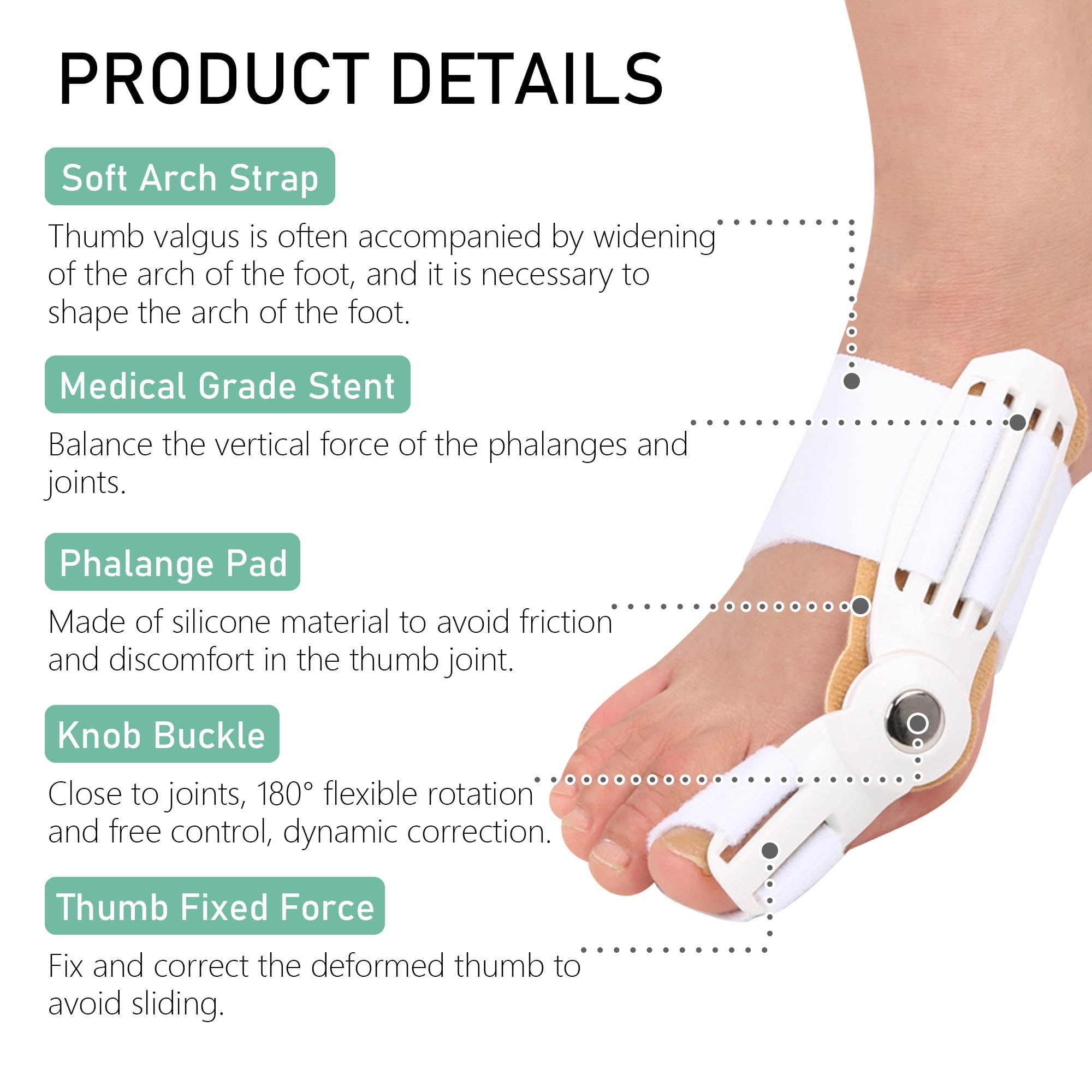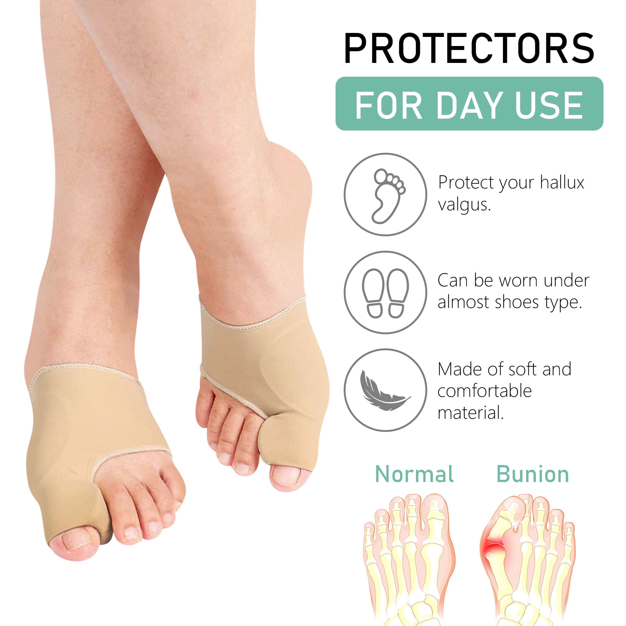 Feature: 1.Silicone toe big bone valgus: With an insulating pad that fits between the big and second toes, this gel protectors instantly stop toe overlap to reduce skin irritation & cut down on the risk of infections, calluses & corns. 2.Bunion Splint Corrector: Made of high-quality medical grade material. Soft cushions are easy to clean. We utilize the strongest materials out there to ensure that your bunion corrector splints remain in great condition and serve you for many years. 3.Fabric Hallux VaLgus: Silicon protection cover is placed on the lateral area of the toe part. The cover reduces pain caused by hallux valgus, prevents overmuch shoe galling, and takes upside impacts. Protection is anatomically adjusted and isolates painful areas, helps to heal the skin.