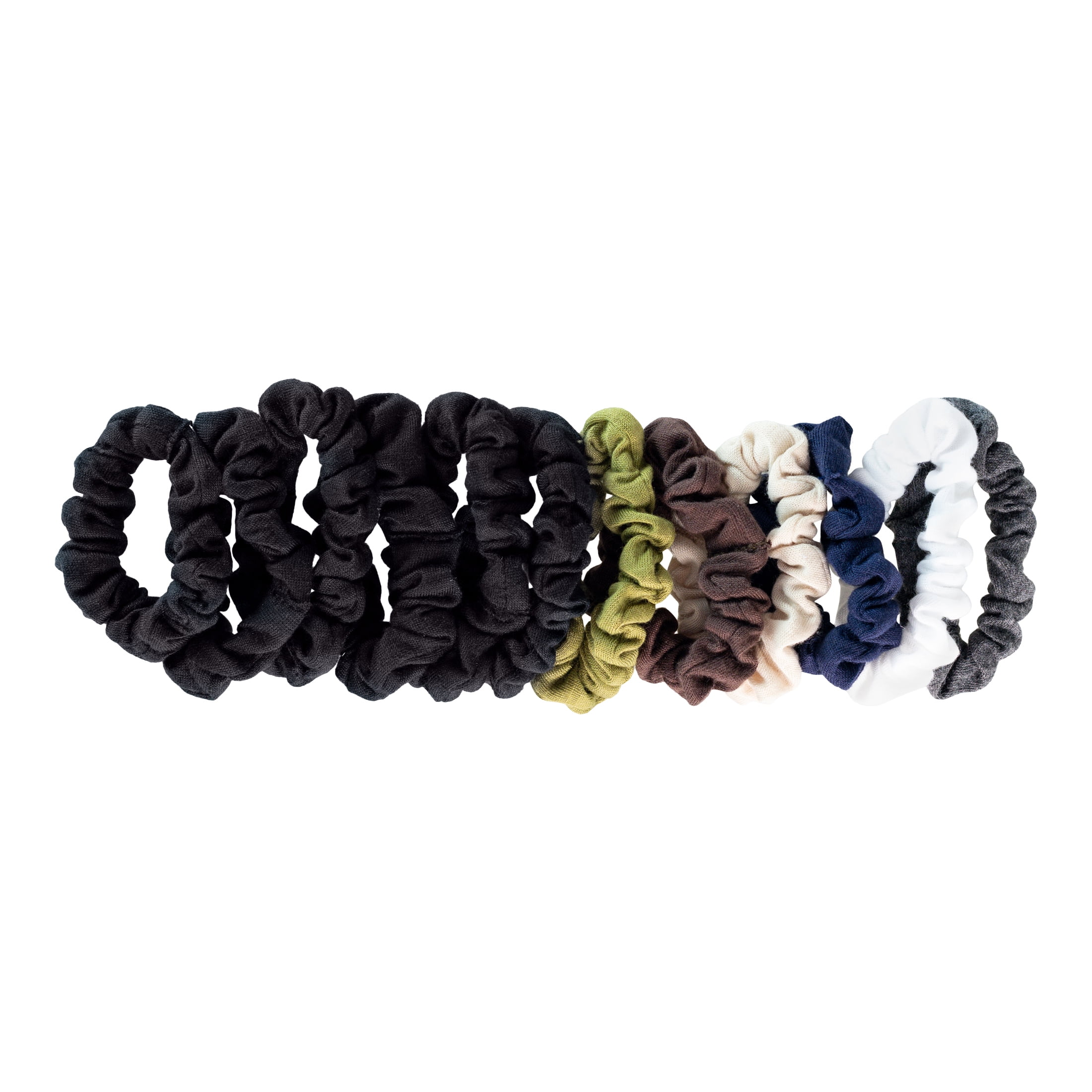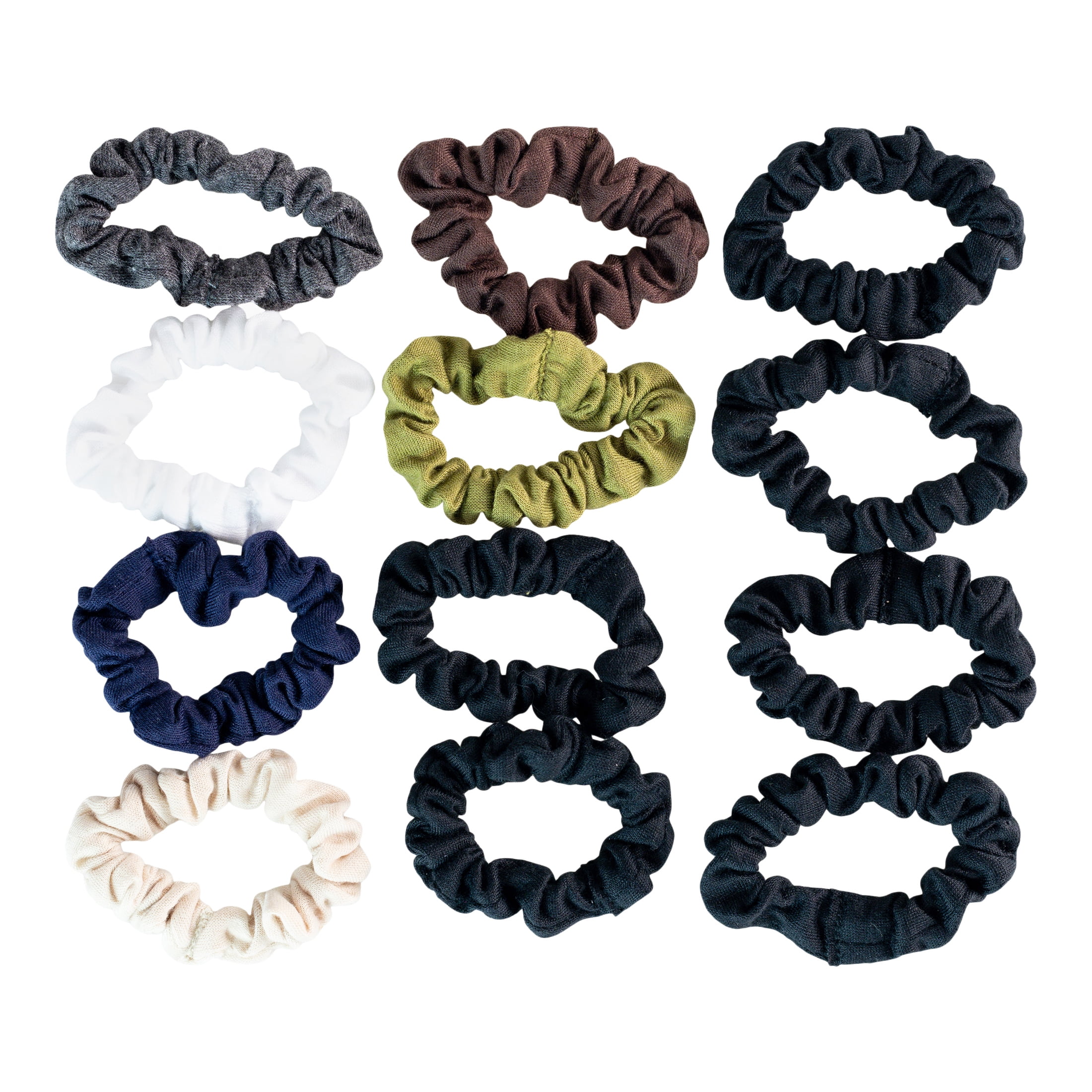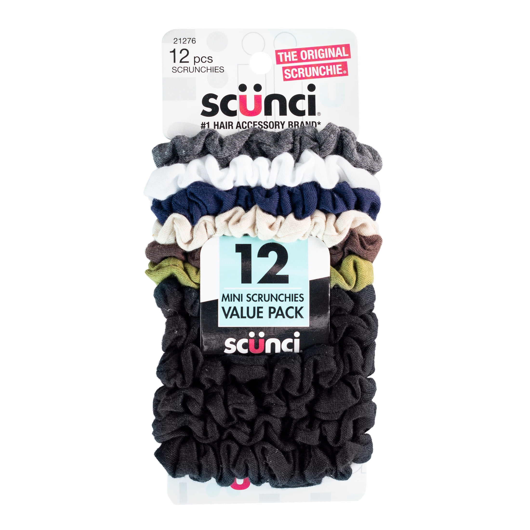 Scunci Original Scrunchies Mini Size in Washable Fabric in Black, White, and Neutral Shades, Perfect for Wrist-to-Hair Versatility, 12ct