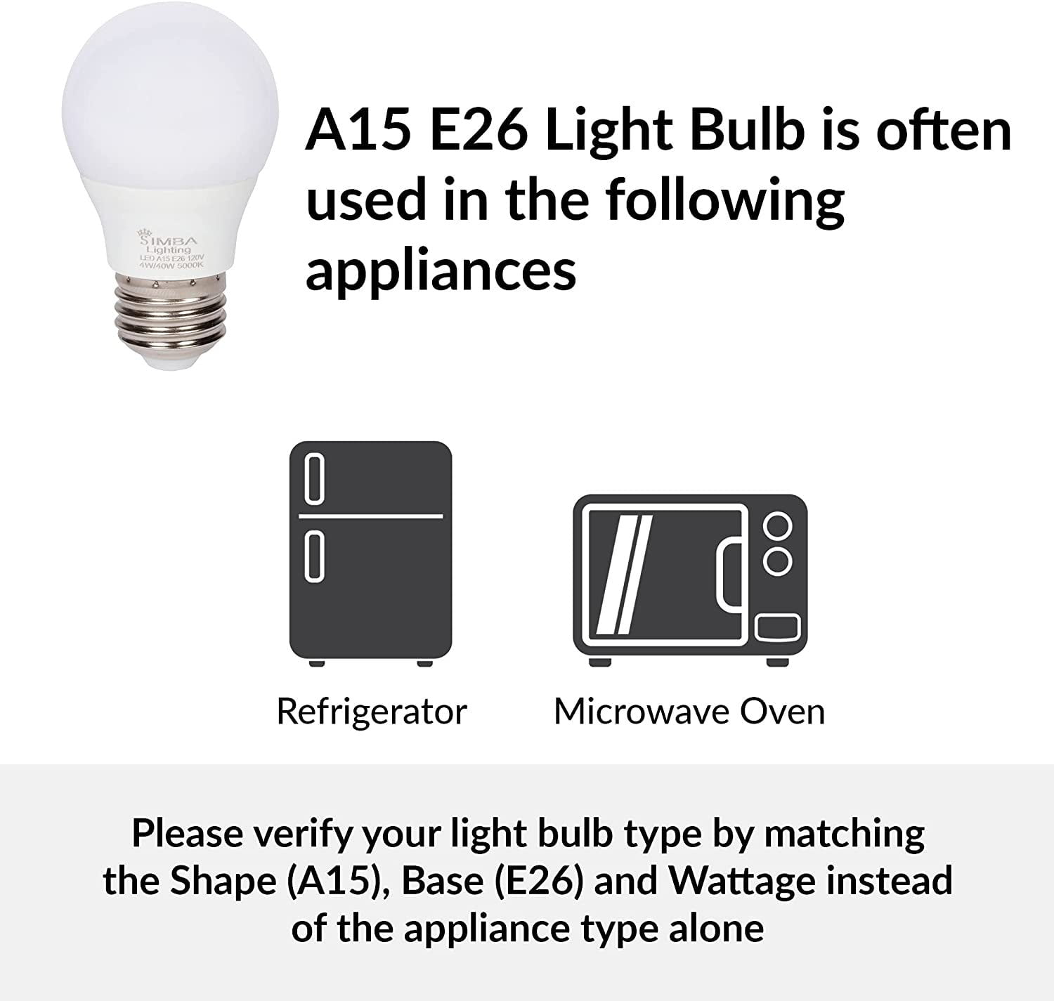 The Simba Lighting high output A15 / A50 compact light bulb is often used for small household appliances such as fridges, freezers, ceiling fans, bathroom vanity, desk, and floor lamps. Equipped with high quality LEDs, this light bulb provides a wide 240 degree beam angle.