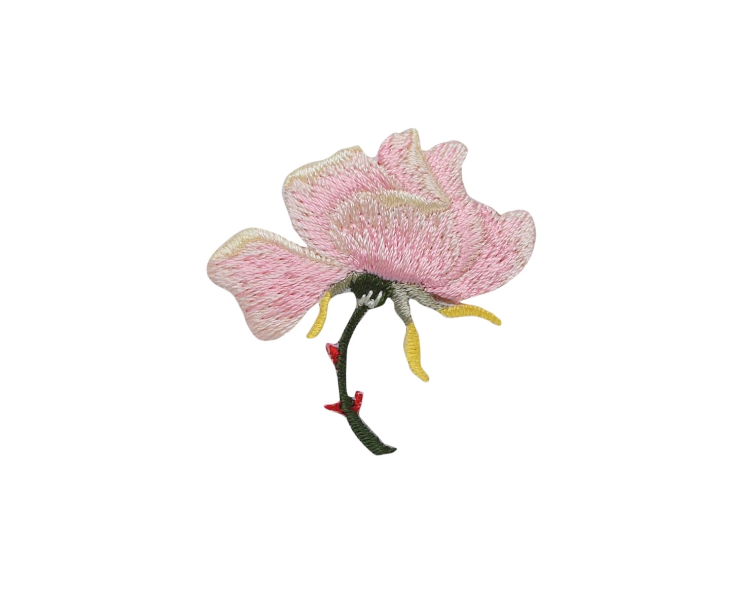 Measures 1-1/4" x 1-3/8" (3.2cm x 3.5cm)High quality, detailed embroidery applique.Can be sewn or ironed on.Great for hats, bags, clothing, and more!Small Pink Rose – Open Petals – Flower – Iron on Applique/Embroidered Patch