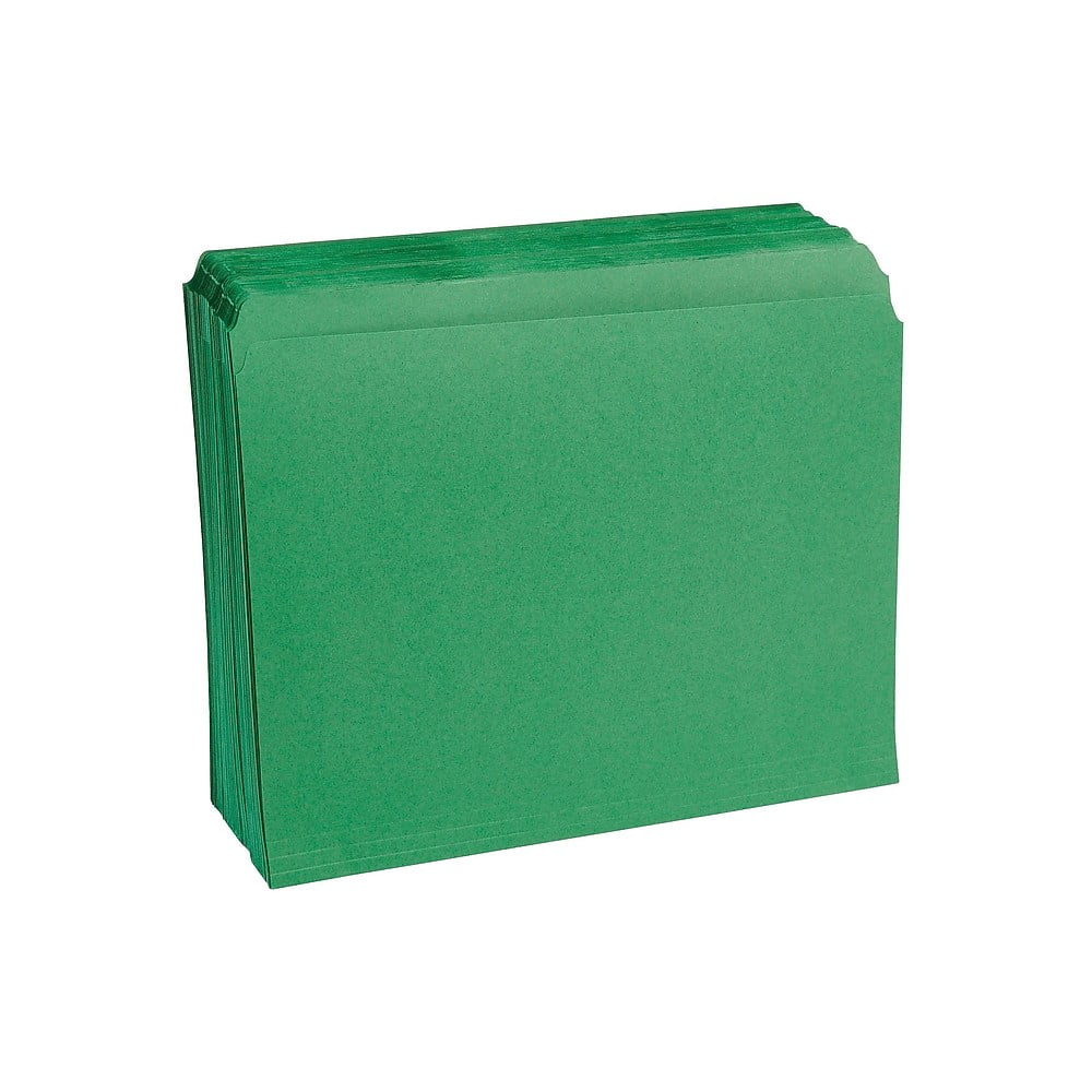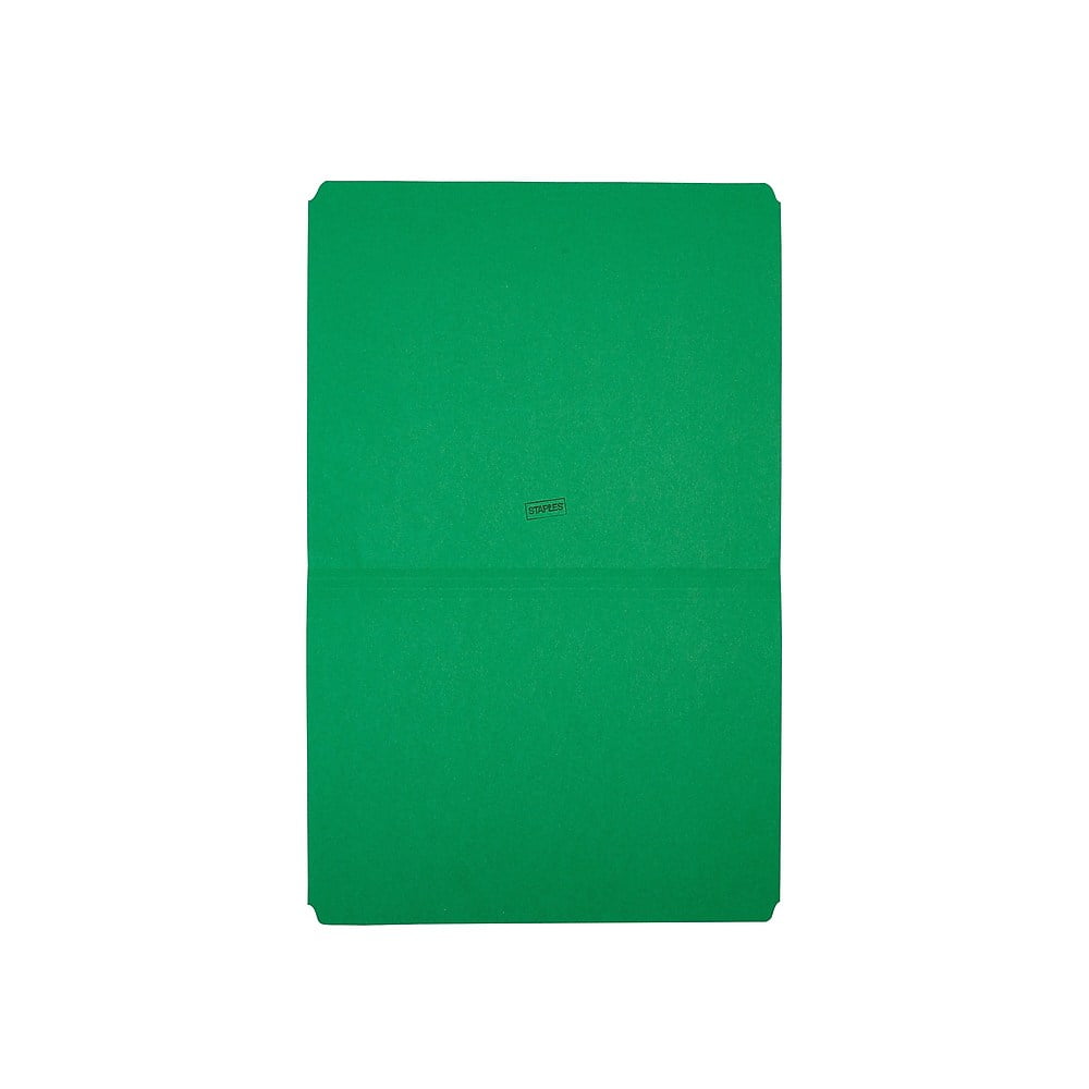 Manage your office’s filing needs with these Staples letter-size green file folders.Bring a color-coding element to file cabinet drawers with these green folders. Straight-cut tabs provide ample space for labeling, and the sturdy construction makes each folder conveniently reusable. Thoughtful sizing accommodates standard pages, keeping documents protected from potential loss and damage. These Staples letter-size green file folders come in a 100-count box to make replenishing your office or classroom simple. Comes in green and is made of 10.5-point paper stock with 114# basis weight for durability. Straight-cut tabs keep filing and reordering files simple. Letter-size folder easily holds important files. 100 folders per box. Large pack sizes are perfect for home, office, or classroom. Sold as 100/Box.