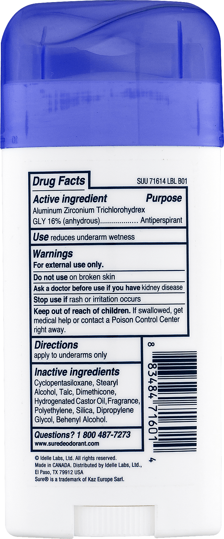 Sure Anti-Perspirant & Deodorant gives you a fresh feeling with all-day protection. It reduces underarm wetness, giving you confidence knowing that you will be protected from sweat and body odor for a long day at the office, after playing sports or a day at the gym. This fresh scented deodorant works as hard as you do and is tough on sweat but not on skin.