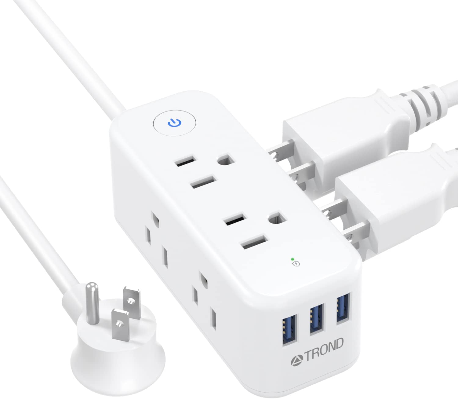 TROND Power Strip Surge Protector with USB, 5ft Long Extension Cord with 3 USB and 6 AC Outlets White