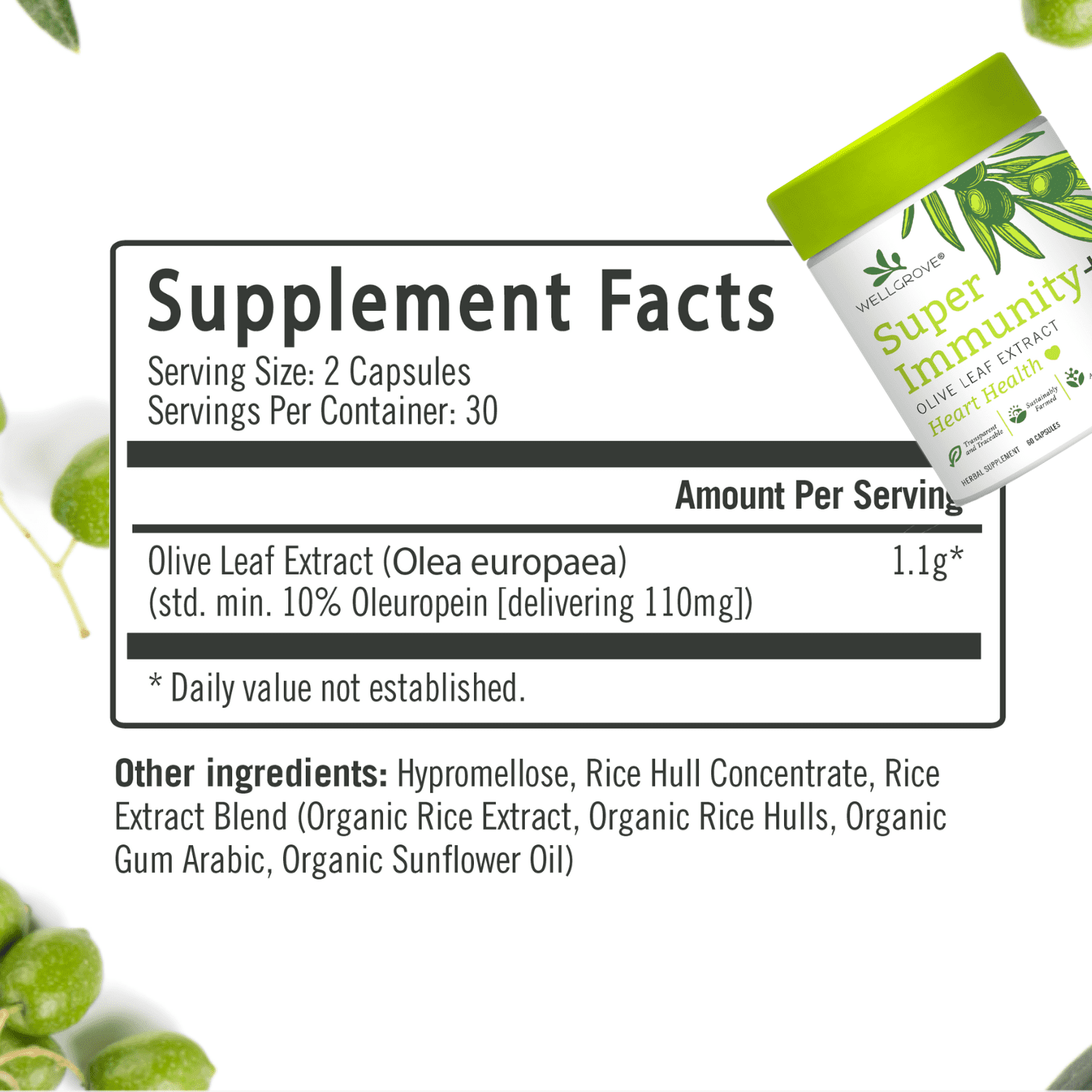 WellGrove Super Immunity Olive Leaf Extract + Heart Health Capsules | 1,100mg Olive Leaf | Natural, Traceable, Non-GMO | Immune, Heart Health, Cardiovascular, Antioxidant Supplement | (60 Capsules)Our premium Olive Leaf Extract Capsules are specially crafted with the intent of providing the purest product possible. As Australia’s leading olive brand, we strive to maintain a reputation of bringing only the best quality of all natural products to your home. We’re committed to maintaining this foundation for freshness far into the future.