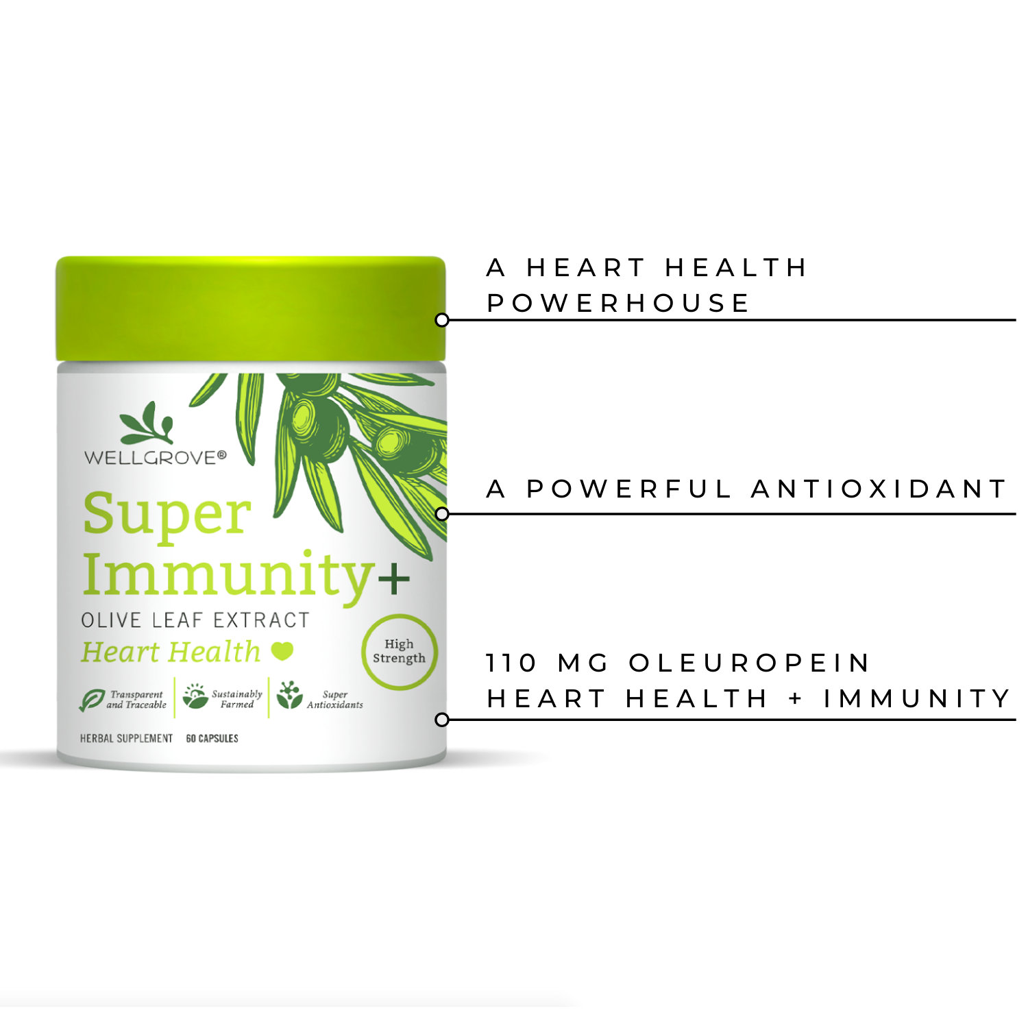 Wellgrove Super Immunity Olive Leaf Extract + Heart Health 60ct Capsules, 30 Servings