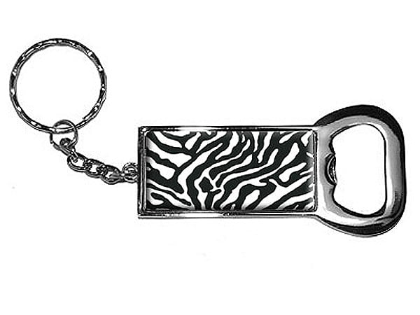 Tags: ' Zebra, ' Zebra Print, Black Bottle, Black Bottle Opener, Bottle Opener, Bottle Opener Keychain, Opener Keychain, Zebra Print