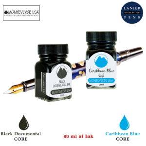 Monteverde 60ml Core Fountain Pen Ink Bottle (30ml Black Documental Ink Bottle G309DB, 30ml Caribbean Blue Ink Bottle G309CU)