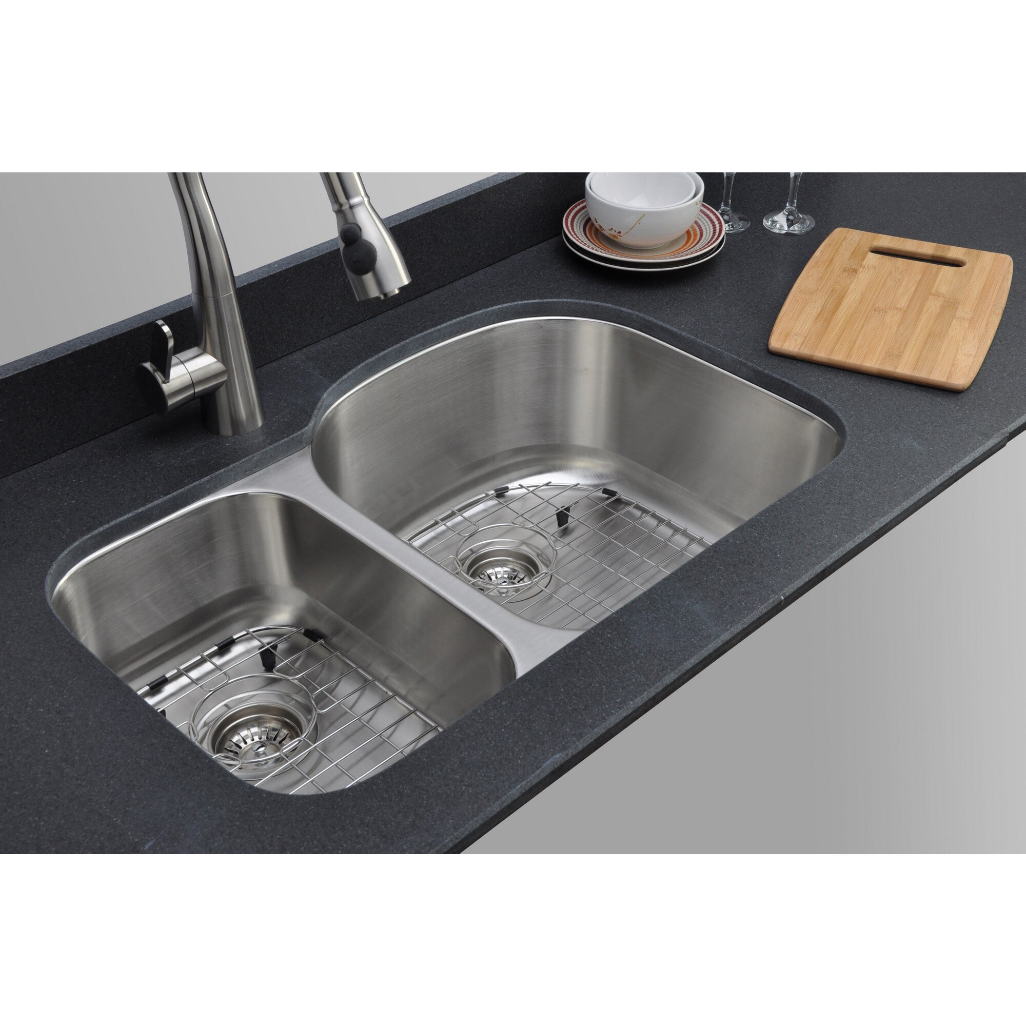 WELLS SINKWARE Craftsmen Series 32” L x 21” W Double Basin Undermount Kitchen Sink with Sink Grid and Basket Strainer