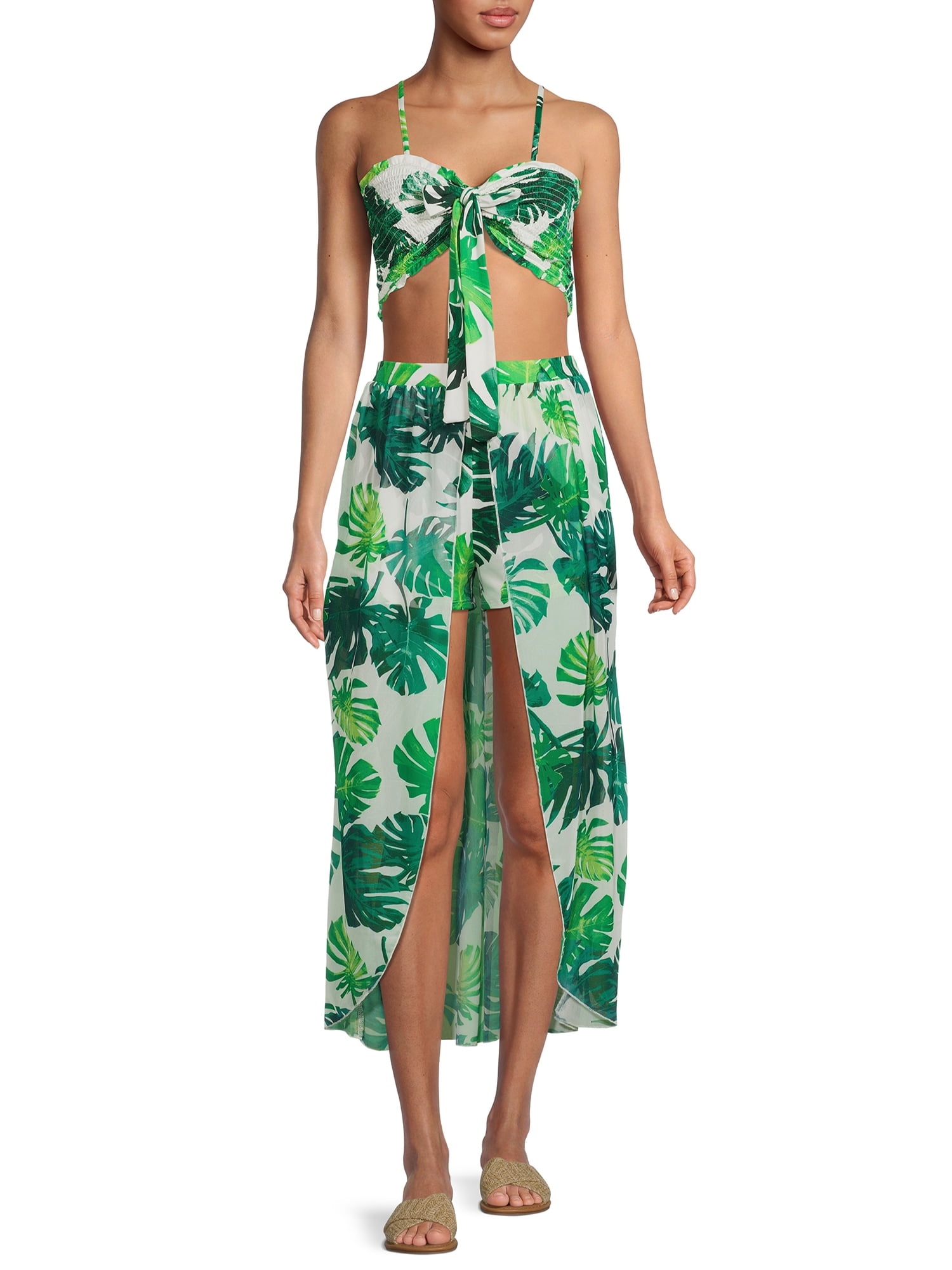 No Boundaries Junior’s Tie Front Cropped Tee Swimsuit Coverup