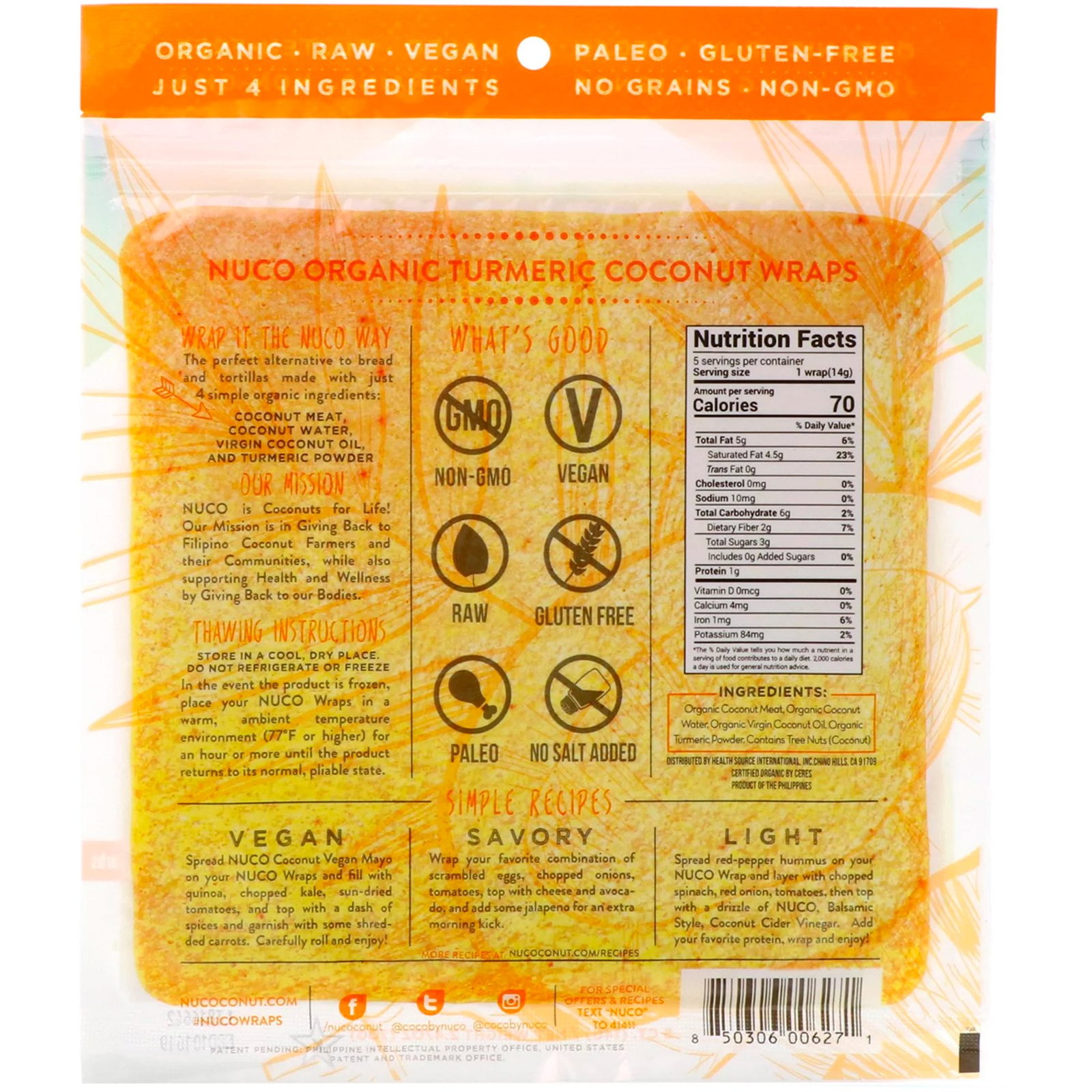NUCO Organic Coconut Wraps – TURMERIC (5 count)