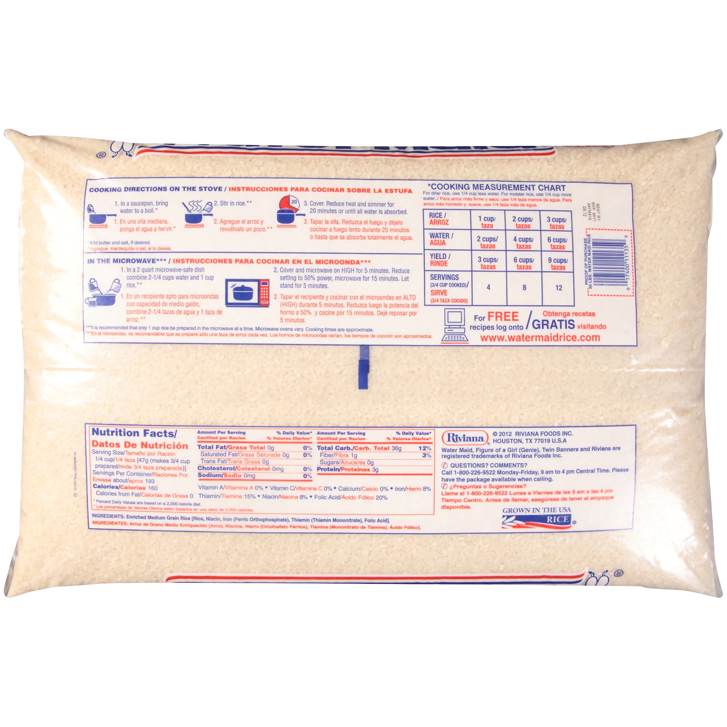 Water Maid® Enriched White Rice, Medium Grain Rice, 20 lb Bag