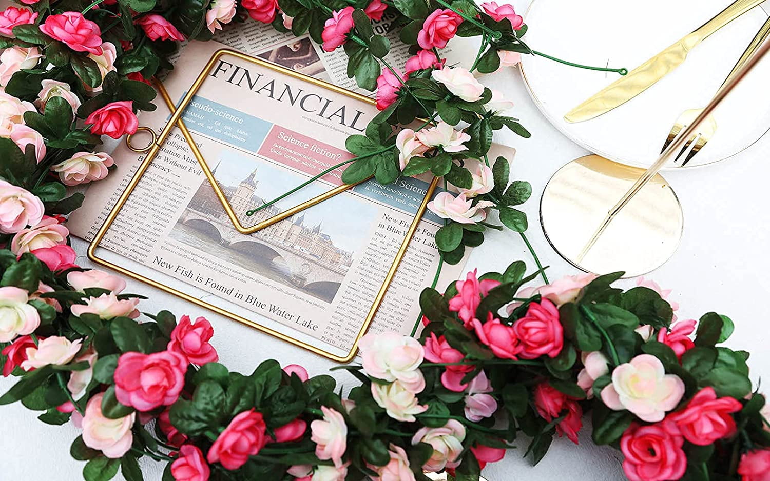 2 Pack 16.4 FT Fake Rose Vine Flowers Plants Artificial Flower Hanging Rose Ivy Home Decor Pink