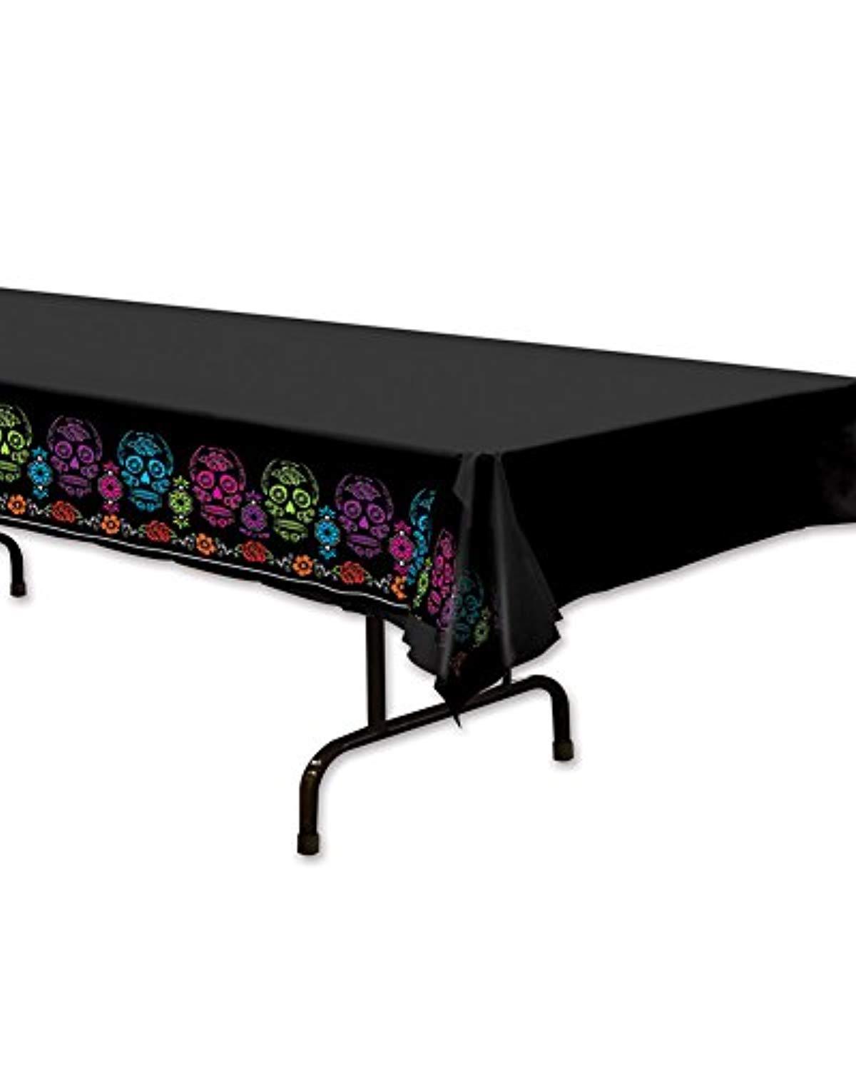 Day Of The Dead Tablecover 54′ x 108′ Plastic Tablecover, Black Multicolor