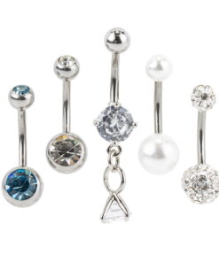 Claire’s Women’s Silver Bridal Bling Belly Rings, 14G/1.63mm, Barbell Post, 5 Pack, 35348