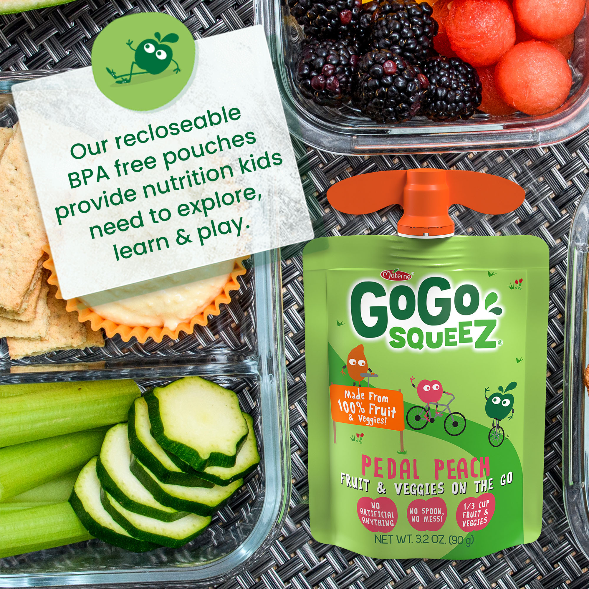 - Fruit & VeggieZ on the GoGo made from 100% real fruit in portable, BPA-free, squeezable pouches