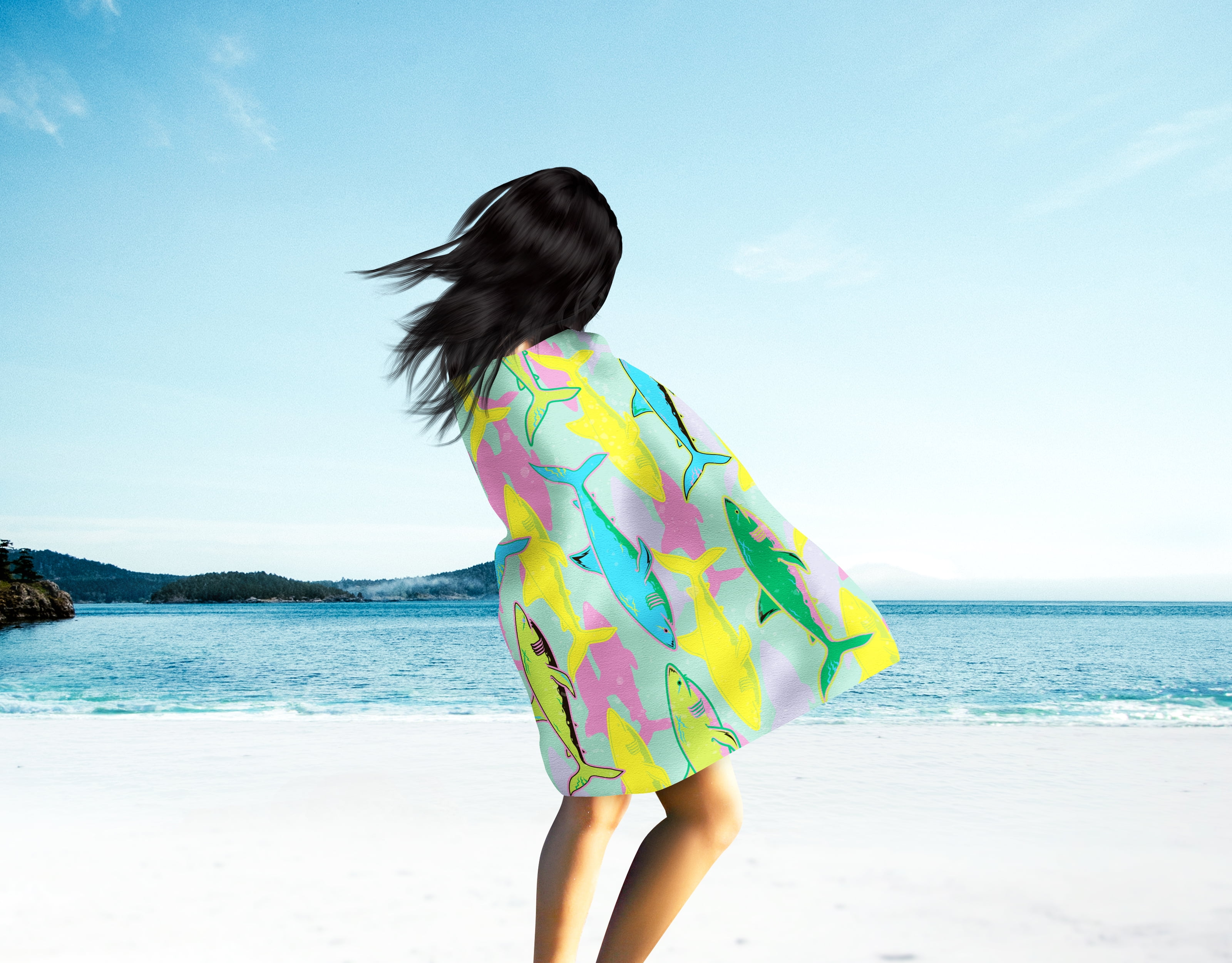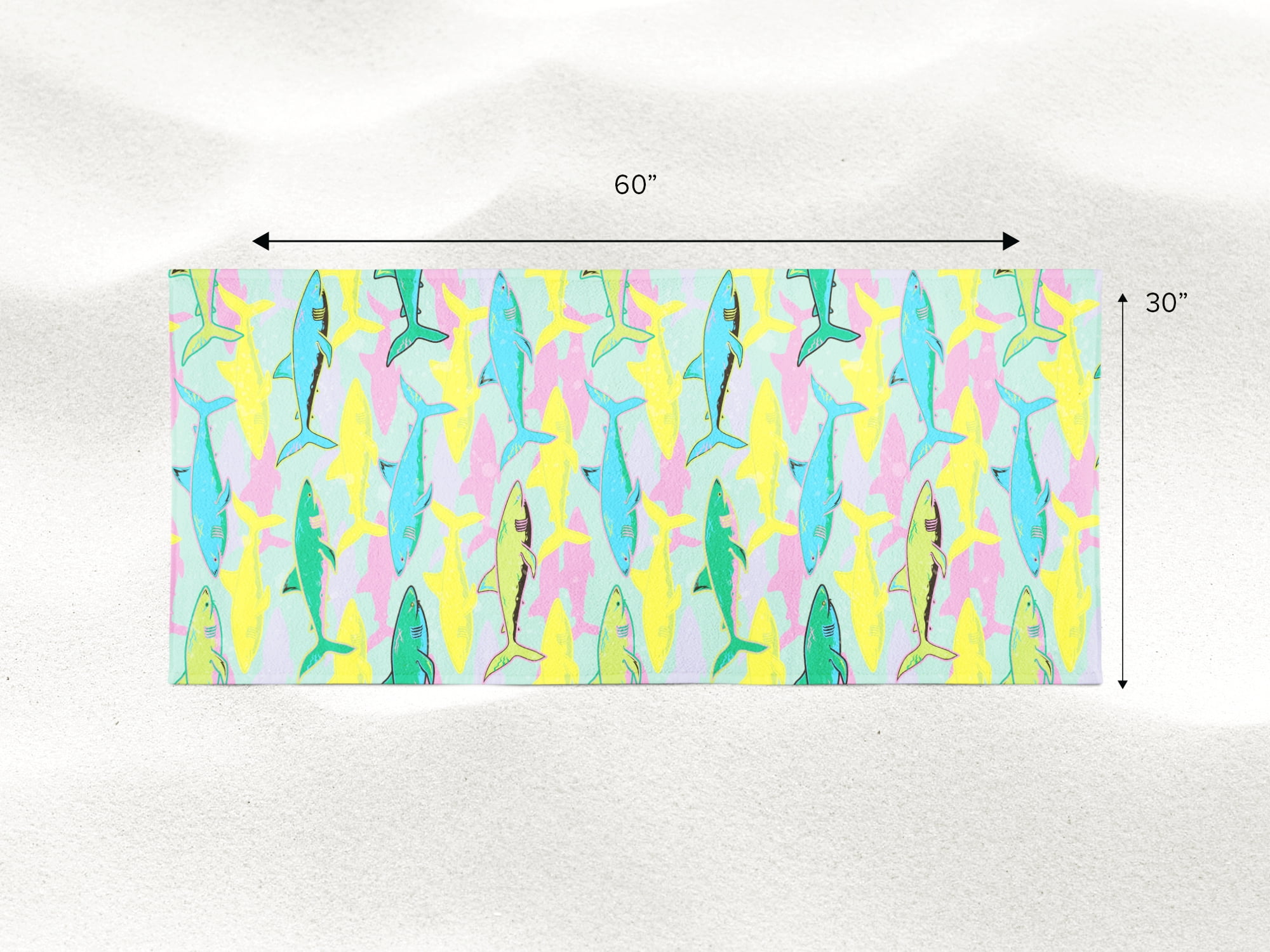 Arkwright Velour Beach Towel (30×60), Shark Design, 100% Cotton