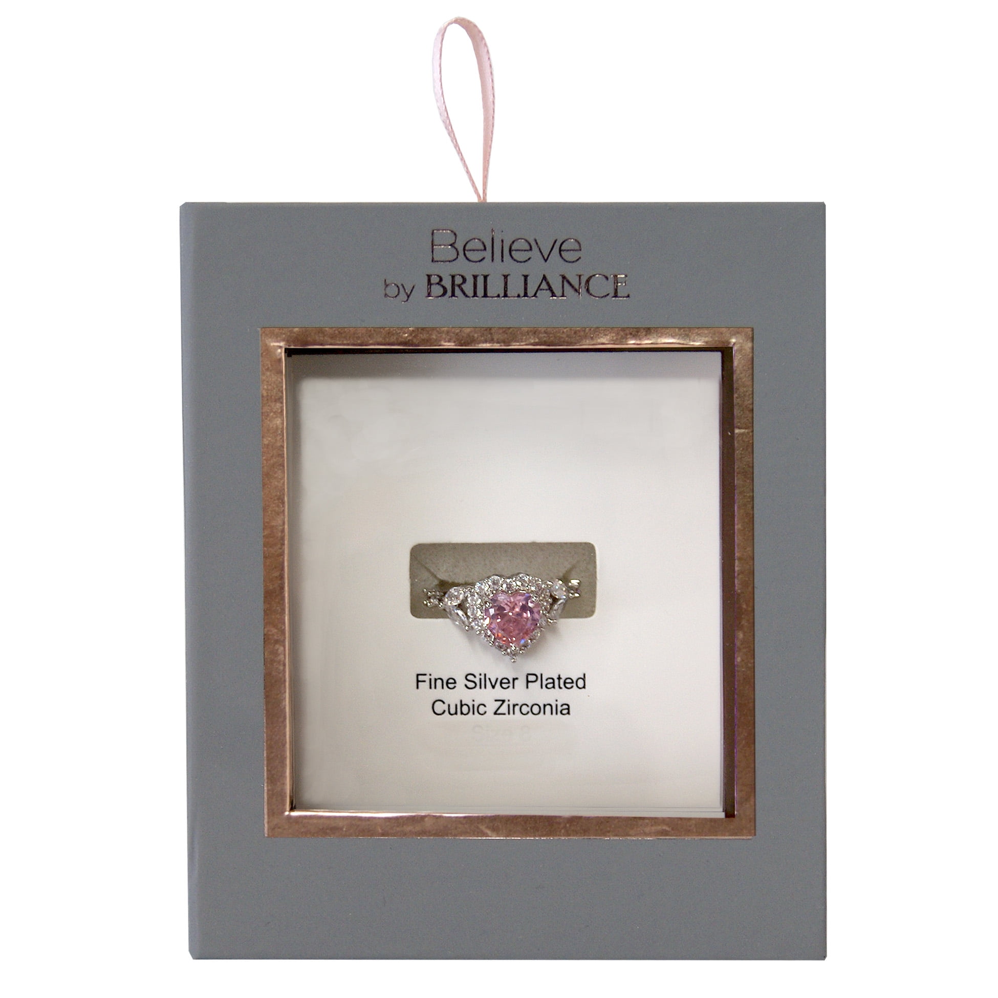 Believe by Brilliance Heart Pink Cubic Zirconia Fine Silver Plate Ring Size 9Fine Silver Plate Heart Shaped Halo Engagement Ring with Cubic Zirconia Stones