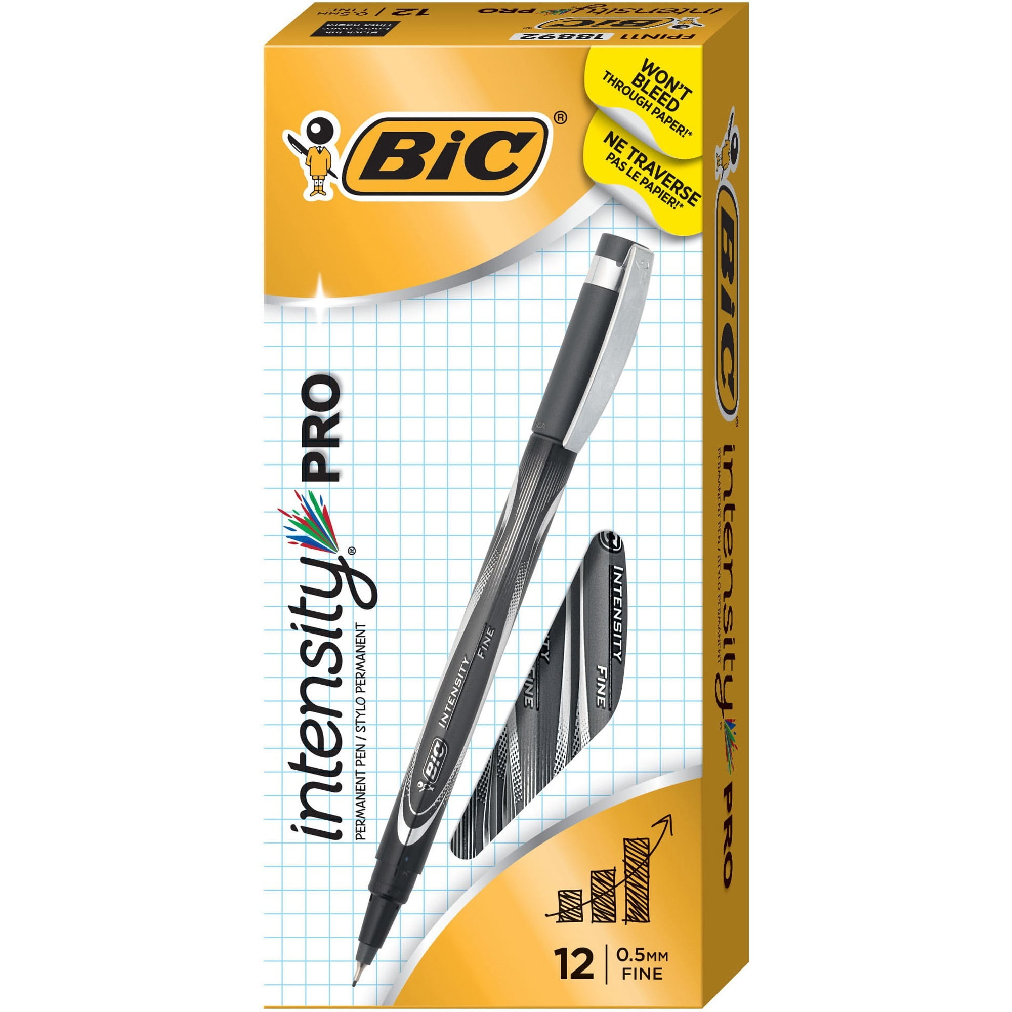Enjoy the feeling of a ball pen and the boldness of a marker with the BIC Intensity marker pen. It features a professional wrap and metal clip for a premium look and feel. The intensity marker pen is permanent on paper, but doesn’t bleed through it -results could vary based on paper characteristics. These pens are also water resistant and smear resistant when dry! available in 0.5 mm porous point in Black, Blue, Red, Green and fashion inks.