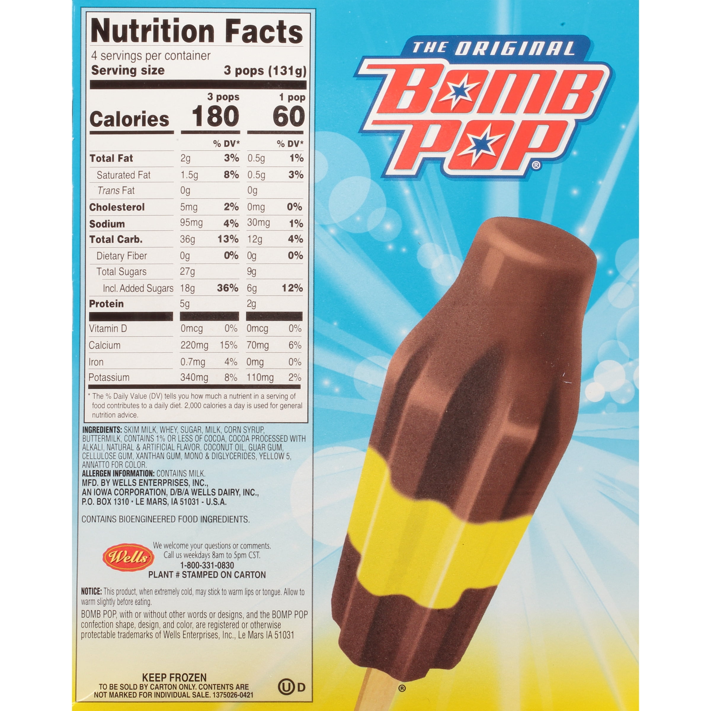Delicious chocolate fudge and banana flavored fudge in the iconic Bomb Pop rocket shape. The package says Banana Fudge, but is it really Fudge Banana? We’ll never tell. Either way, it’s crazy good. With 12 pops in each box, you can share with friends or, with just 60 Calories in each Pop, keep them all for yourself. We don’t judge. Apple pie and ice cream. Red, white, and blue. The best things are not one thing. Iconic and delicious, with multiple flavors in every pop, Bomb Pop is not one thing. Pick up your favorite flavor combination today!