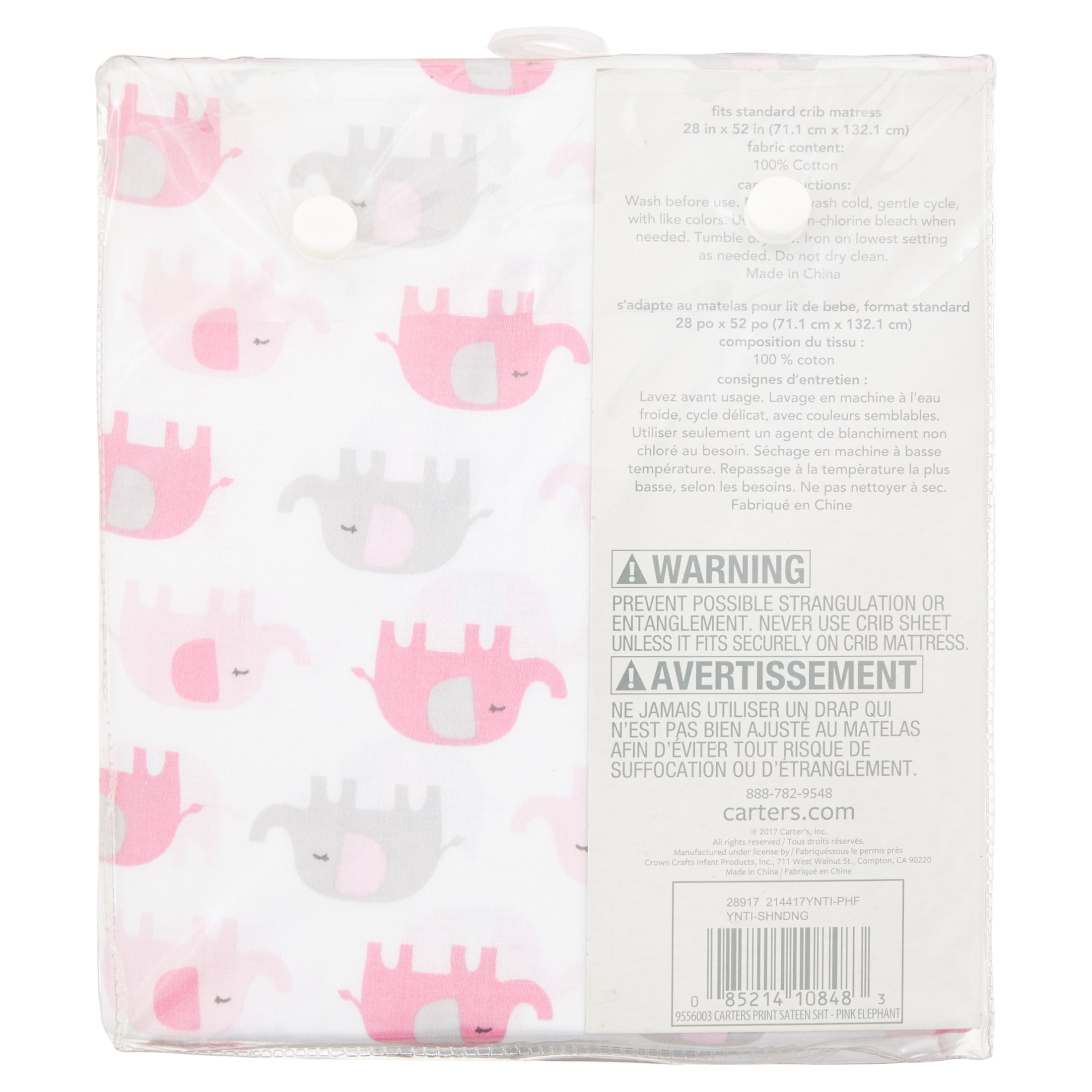 Carter’s Cotton Sateen Crib Sheet – Pink Elephant