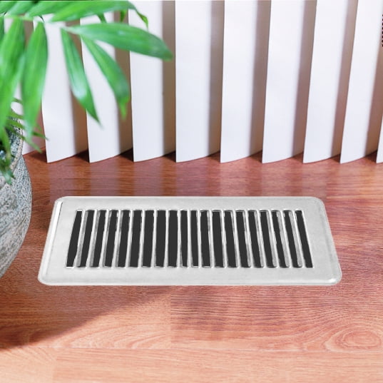 This classic Deflecto Floor Register is ideal for your home, cabin and even RV. The floor register’s grill is made from steel for enhanced durability. Features a rustproof, plastic damper with adjustable airflow control. The white floor register has a smooth finish and round corners for a modern look. Quick and easy installation – no tools or hardware required. Not for use with flush-mounted floors.