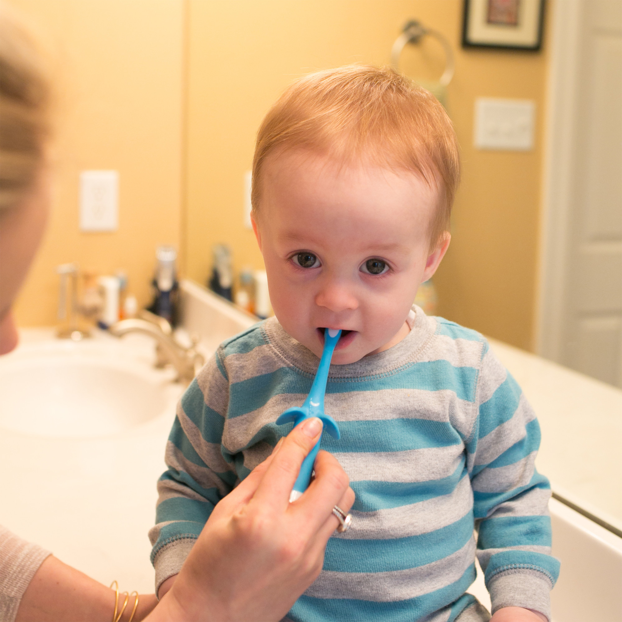 - Super soft bristles safely clean baby’s teeth and gums. Gentle on sensitive mouths with a comfort-grip handle.