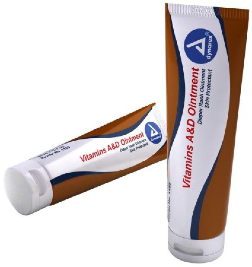 Dynarex Vitamin A & D Ointment Treats and prevents diaper rash Helps heal dry flaky chafed skin Protects and smoothes minor cuts and burns Skin protectant for minor cuts, scrapes, burns Diaper rash Ointment Excellent tattoo aftercareDynarex Vitamin A & D Ointment – 4 ounce Flip Top Tube, 1 Count