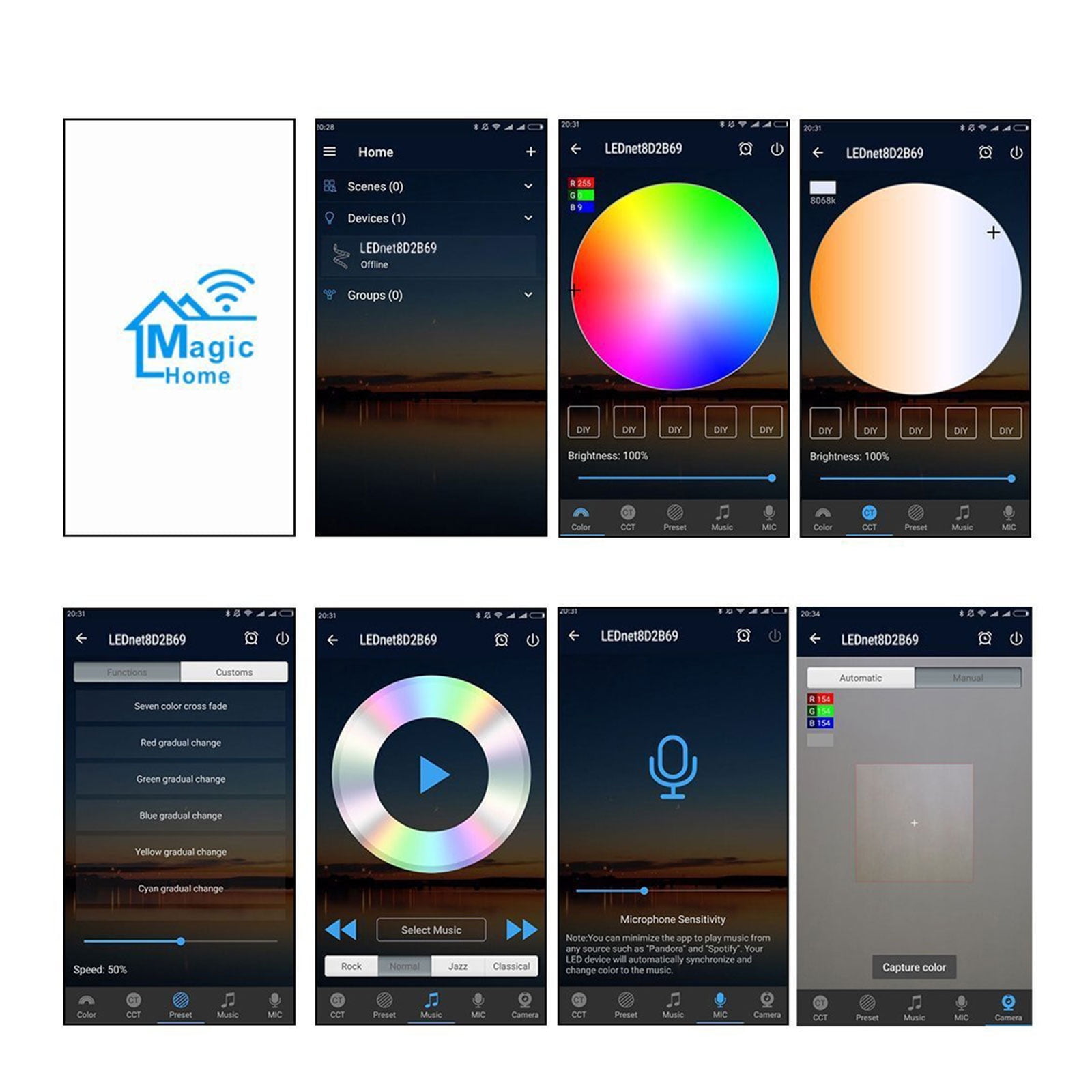 - Wifi wireless smart controller: color, brightness, color temperature, mode and speed, support microphone, smart music and timer mode