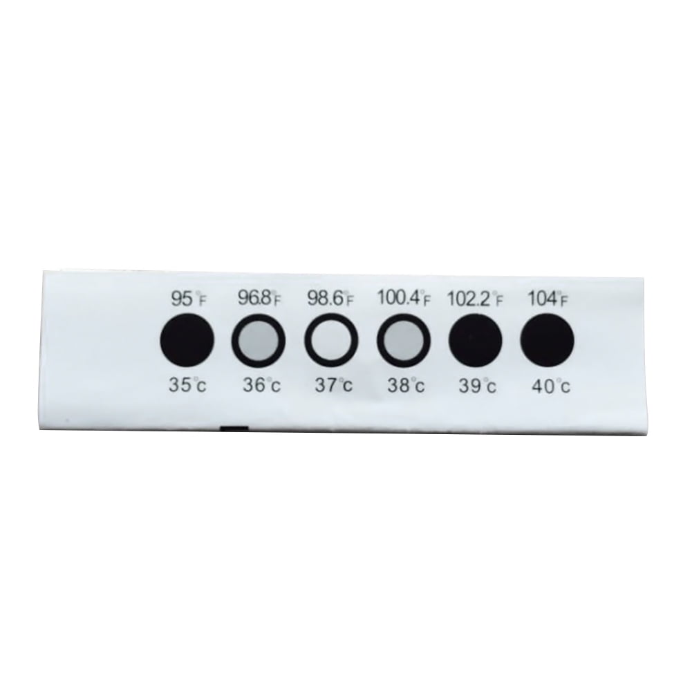 This liquid crystal thermometer shoWs the temperature index according to the heating temperature. Under normal circumstances, the body’s forehead temperature Will be 0.5 degrees Celsius loWer than the normal body temperature. But because Weather is different in each place and the environment is not the same, the body’s forehead temperature Will be different. Therefore, users must use it at normal room temperature. In addition, because the temperature in Winter is relatively loW and the temperature of the thermometer strip itself is loW, the strip is heated sloWly. Please increase the contact time for the strip and the forehead.