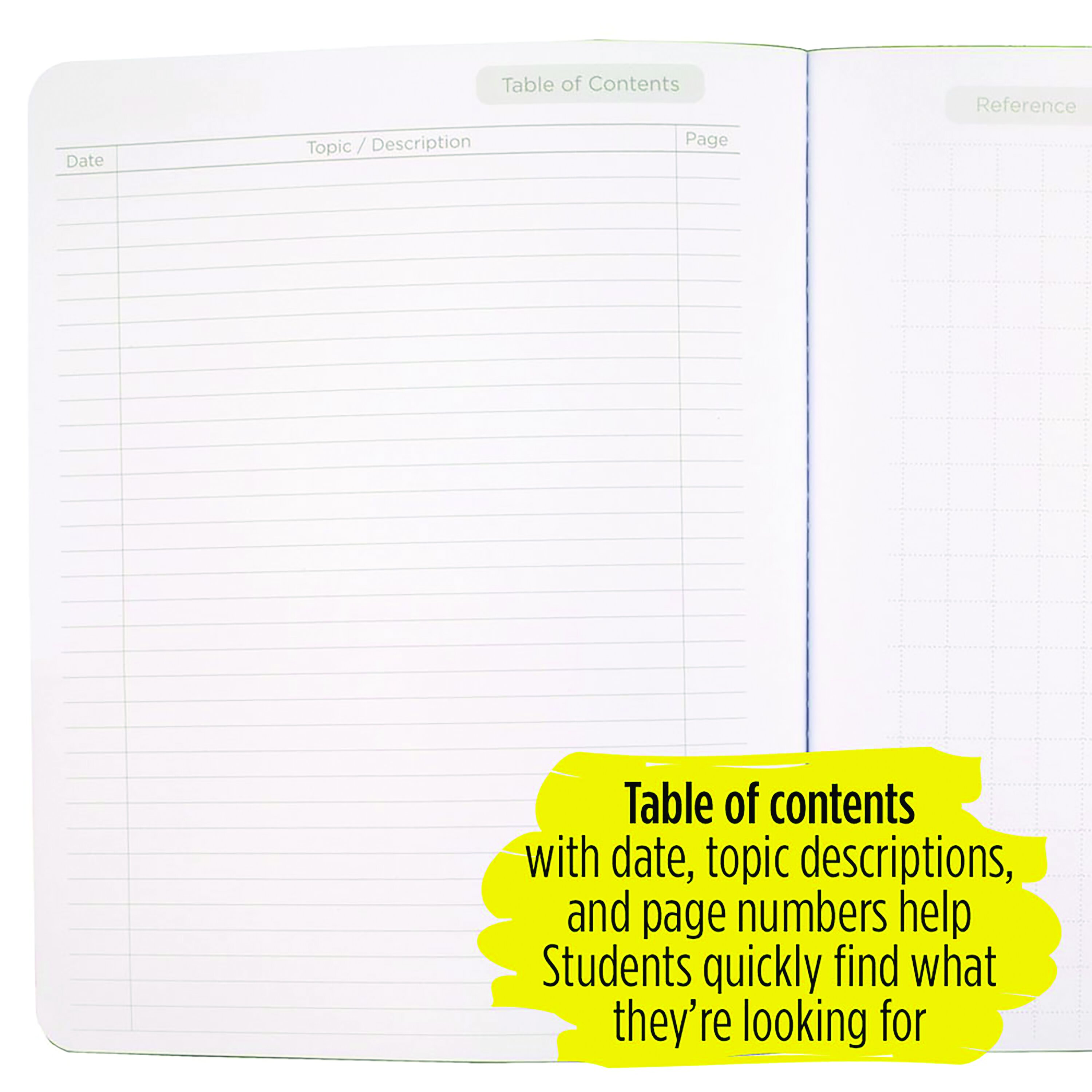- Students can list topic, date and page number in the Table of Contents pages. Each composition book has 100 sheets that feature a side margin and number block for page customization.