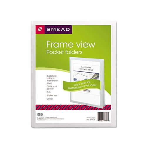 Perfect for presentations, proposals or projects. Customize your presentation by inserting a cover sheet into the display window. Durable poly material is tear and water resistant and easy to clean. Pockets hold 50 sheets each. Die cut business card holder on inside back pocket. Acid free and PVC free. Front Cover Colors: Clear/Oyster Color Family: White Back Cover Colors: Oyster Sheet Size: 11 x 8 1/2. Green : Acid free, PVC free.