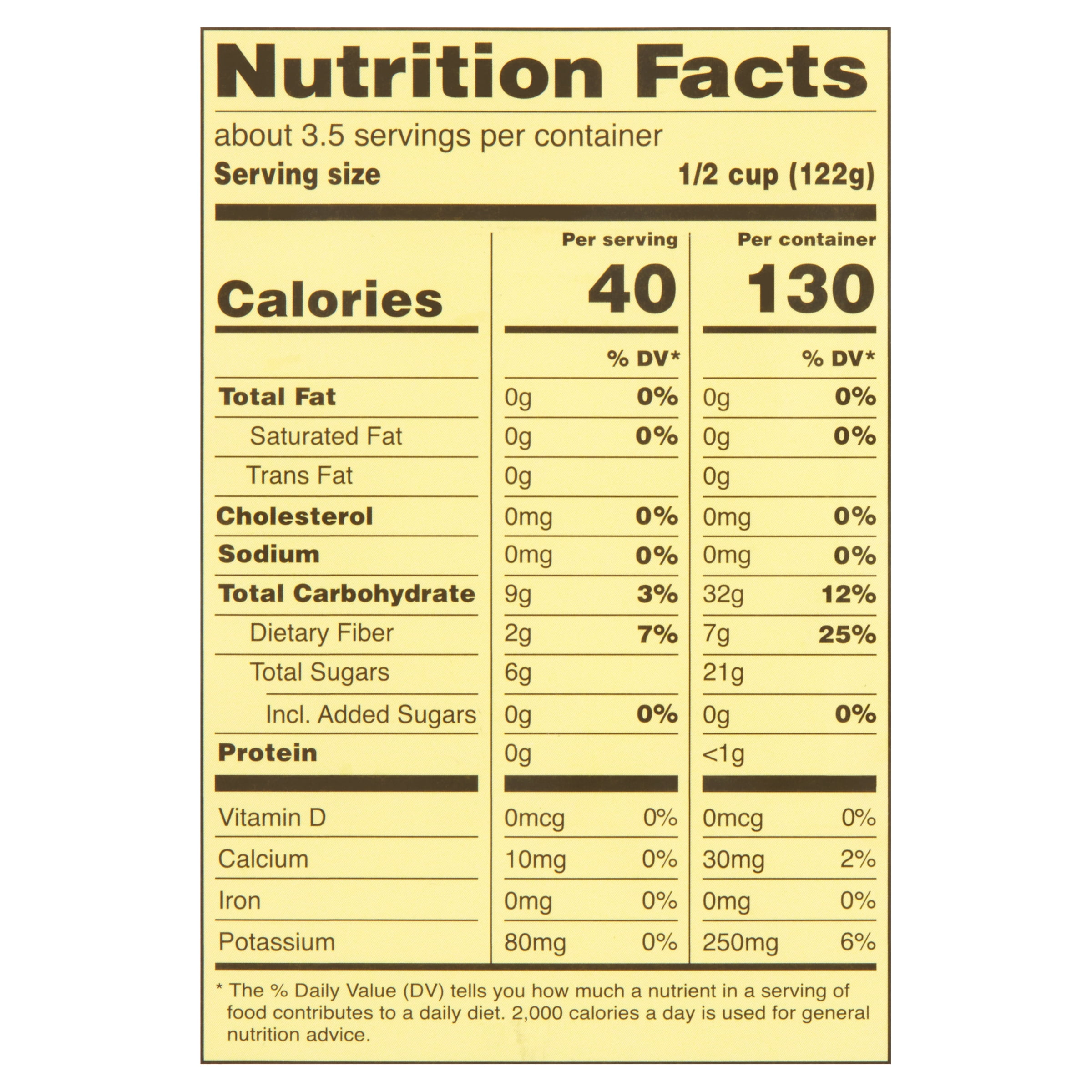 - No fat, cholesterol, or sodium