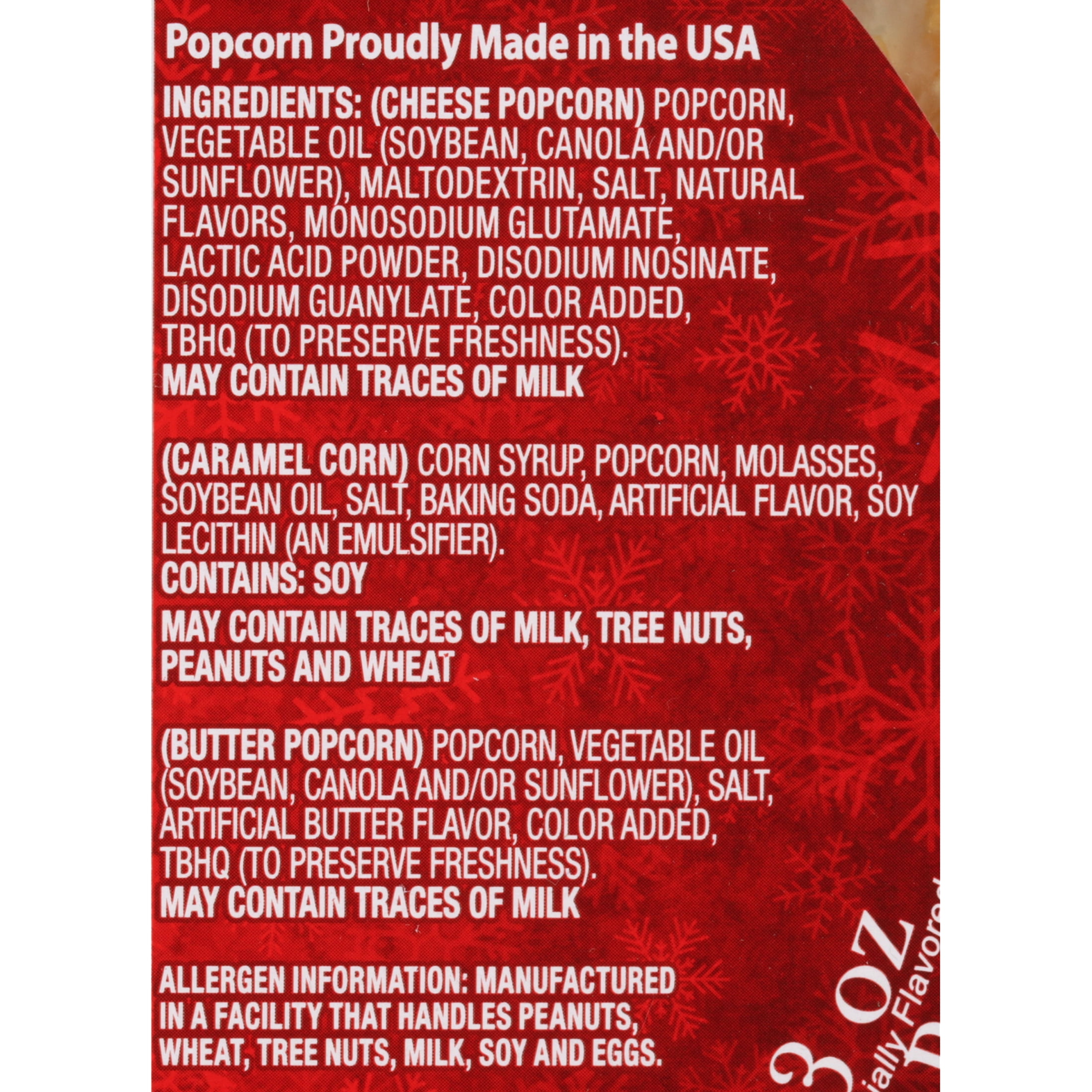 - Tin includes three delicious flavors: butter, cheese, and caramel.