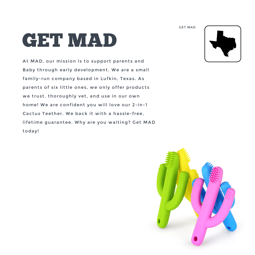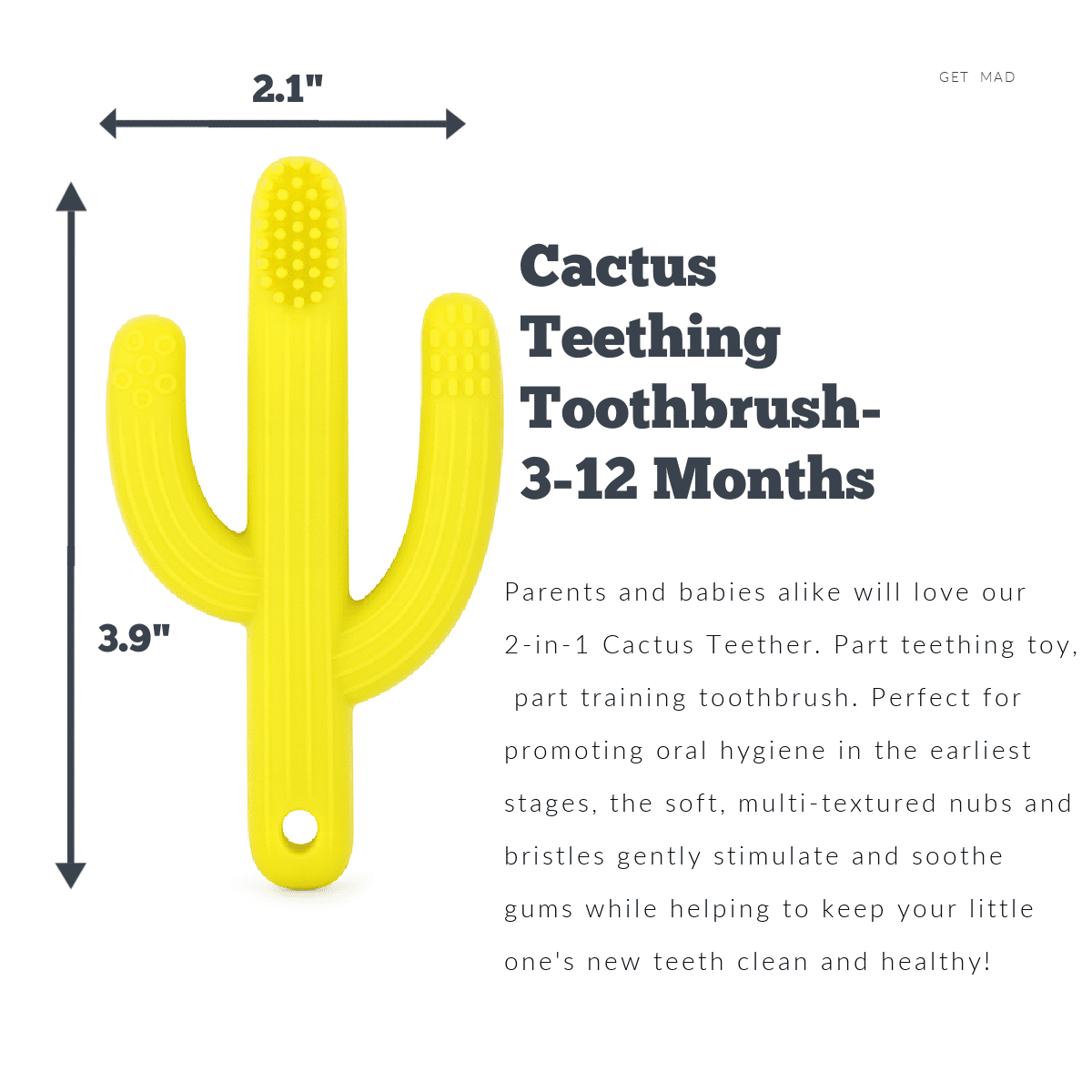Just4Tots by MAD – Cactus Teething Toothbrush – 2-in-1 Baby Teether Toy – Gum Soother and Massager for Natural Teething Relief – Made of Soft, BPA-Free Food Grade Silicone – Yellow, This is a uniquely designed baby teether and toothbrush.2-IN-1 CACTUS TEETHER: No more fussy babies! Our boldly colored, easy-to-grip Cactus Teething Toothbrush will make your baby all smiles. The soft, textured nubs and bristles gently stimulate and soothe gums while helping to keep your little one’s new teeth clean and healthy! Ideal for ages 3-12 months. SOOTHING RELIEF: Uniquely designed to ease the teething process for babies and parents. The fun, multi-textured surfaces of our baby teethers gently massage teeth and gums. Place the cactus teether in the freezer, and then let your infant chew away for natural relief from sore gums! BPA-FREE SILICONE: You should feel good about what goes in your baby’s mouth. Unlike other teethers on the market, Just 4 Tots uses 100% premium food-grade silicone free of BPA, phthalates, and latex that is safe and gentle on babies’ sensitive mouths. EASY TO CLEAN: Food-grade silicone is a non-porous material and will not harbor bacteria, protecting babies from illness-causing germs. Sanitize the teething toy quickly and easily in the dishwasher! DESIGNED WITH LOVE & CARE: MAD is a small family-run company based in Lufkin, Texas. We only offer products we trust, thoroughly vet, and use in our own home! We are confident you will love our 2-in-1 Cactus Teether. We back it with a hassle-free, lifetime guarantee.Just4Tots by MAD – Cactus Teething Toothbrush – 3-36 Months